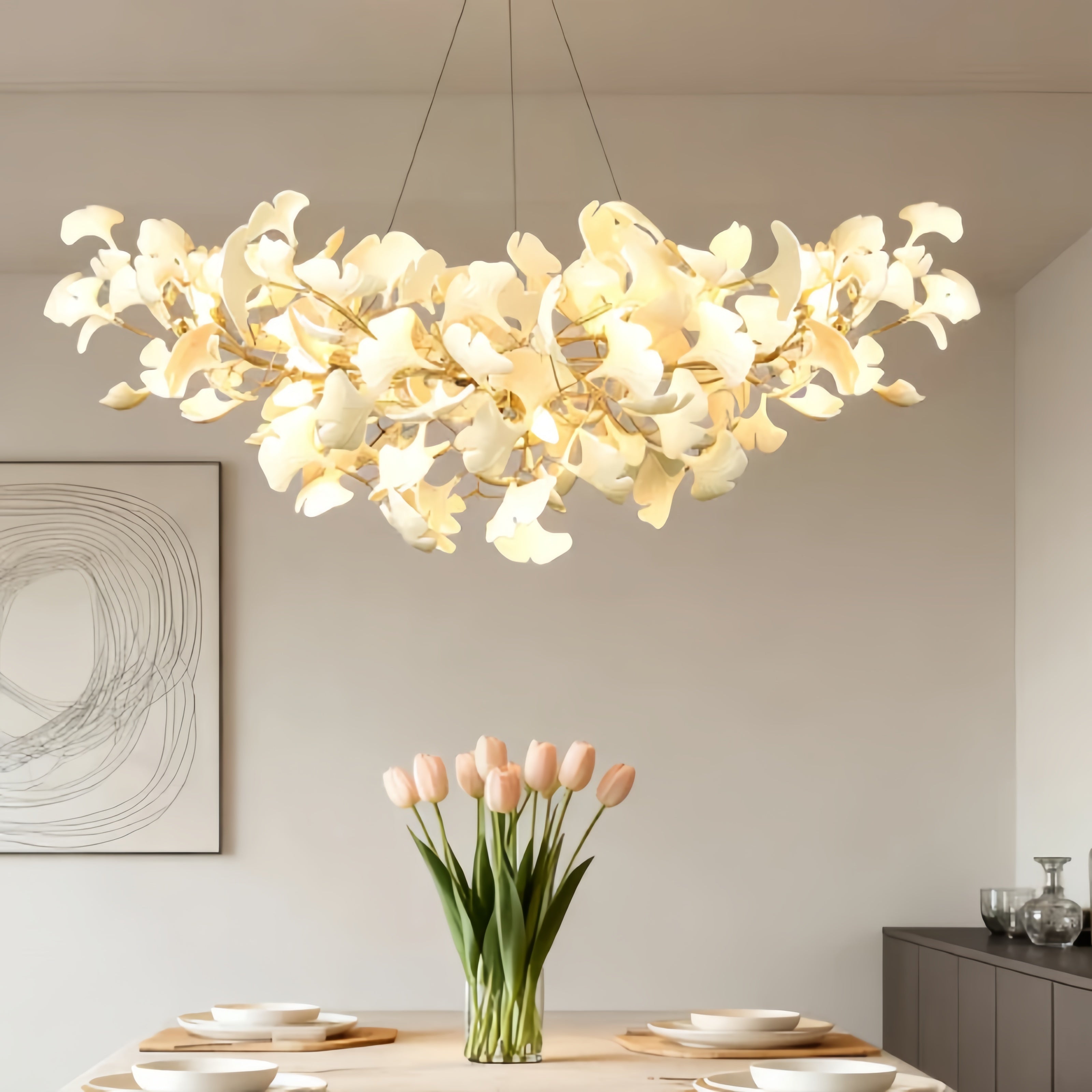 Excelis Luxury Leaf Chandelier – White or Gold Ceramic Design for Dining Room