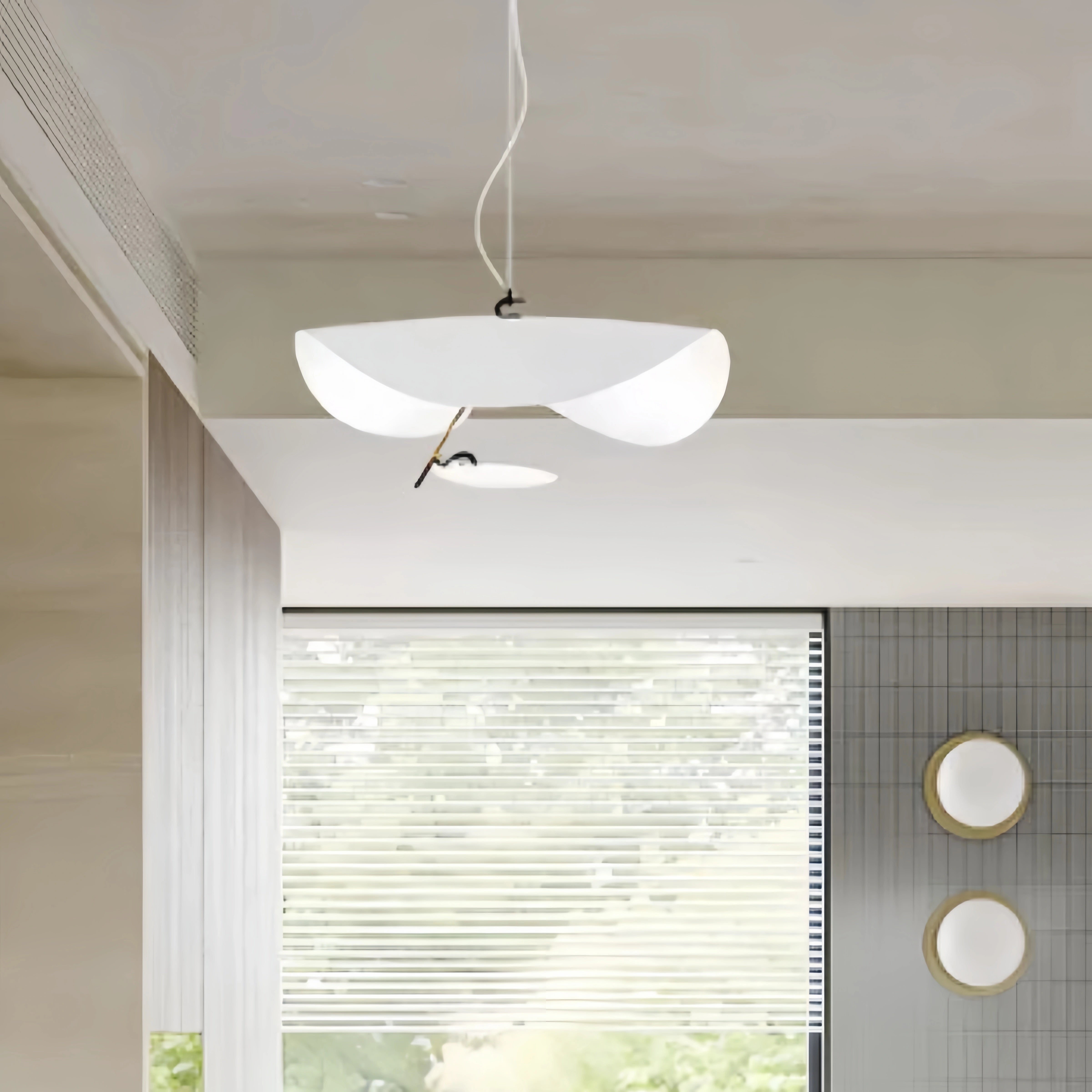 Crema Art Deco White Pendant Light – Curved Metal Design for Dining Room