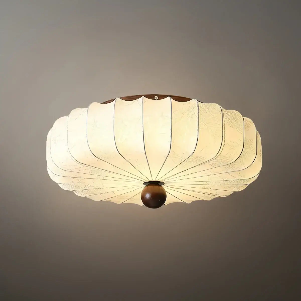 Modern Ceiling Light – Fabric Petal Floral Pattern Wood Accents for Bedroom Living Space