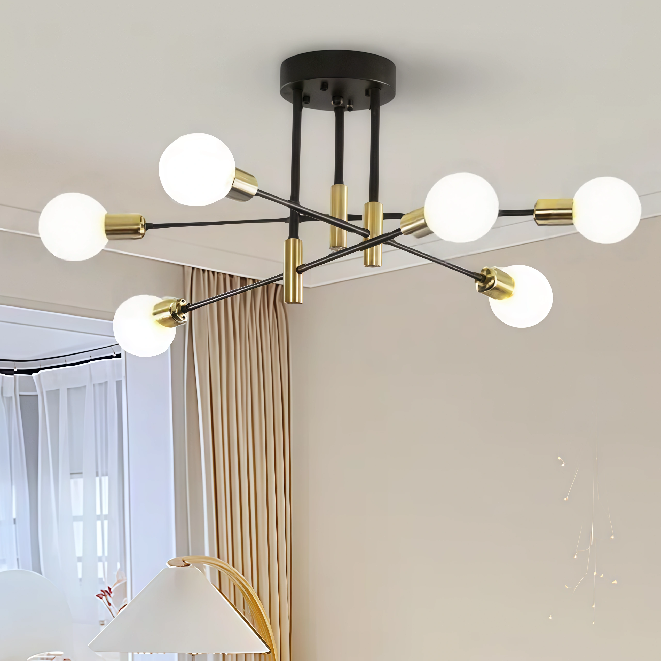 Nebula Modern Branching Chandelier – Black/Gold Metal Fixture 4/6/8 Heads Living Room