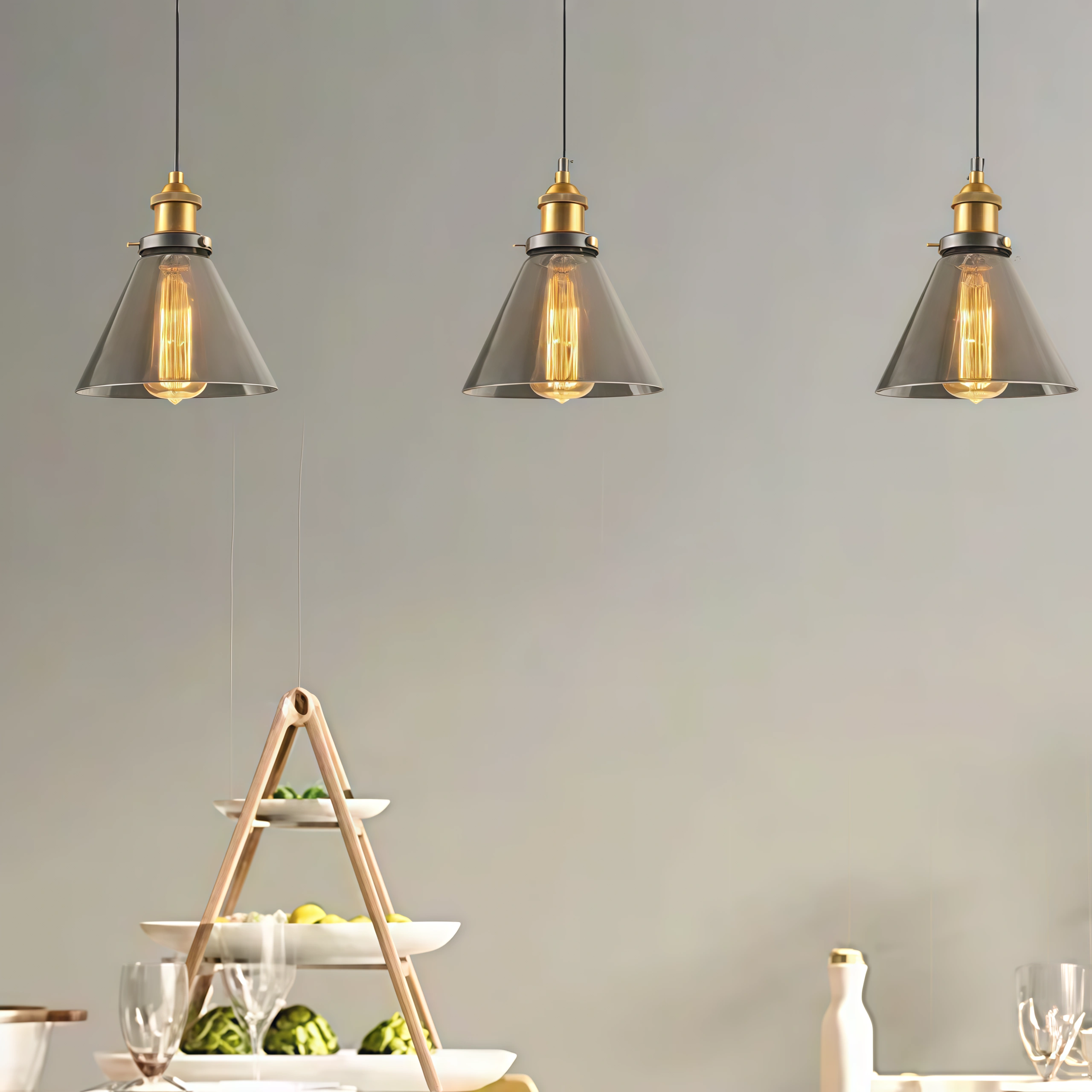 Irondale Industrial Glass Pendant Light – Clear/Amber/Smoke Grey for Dining Room