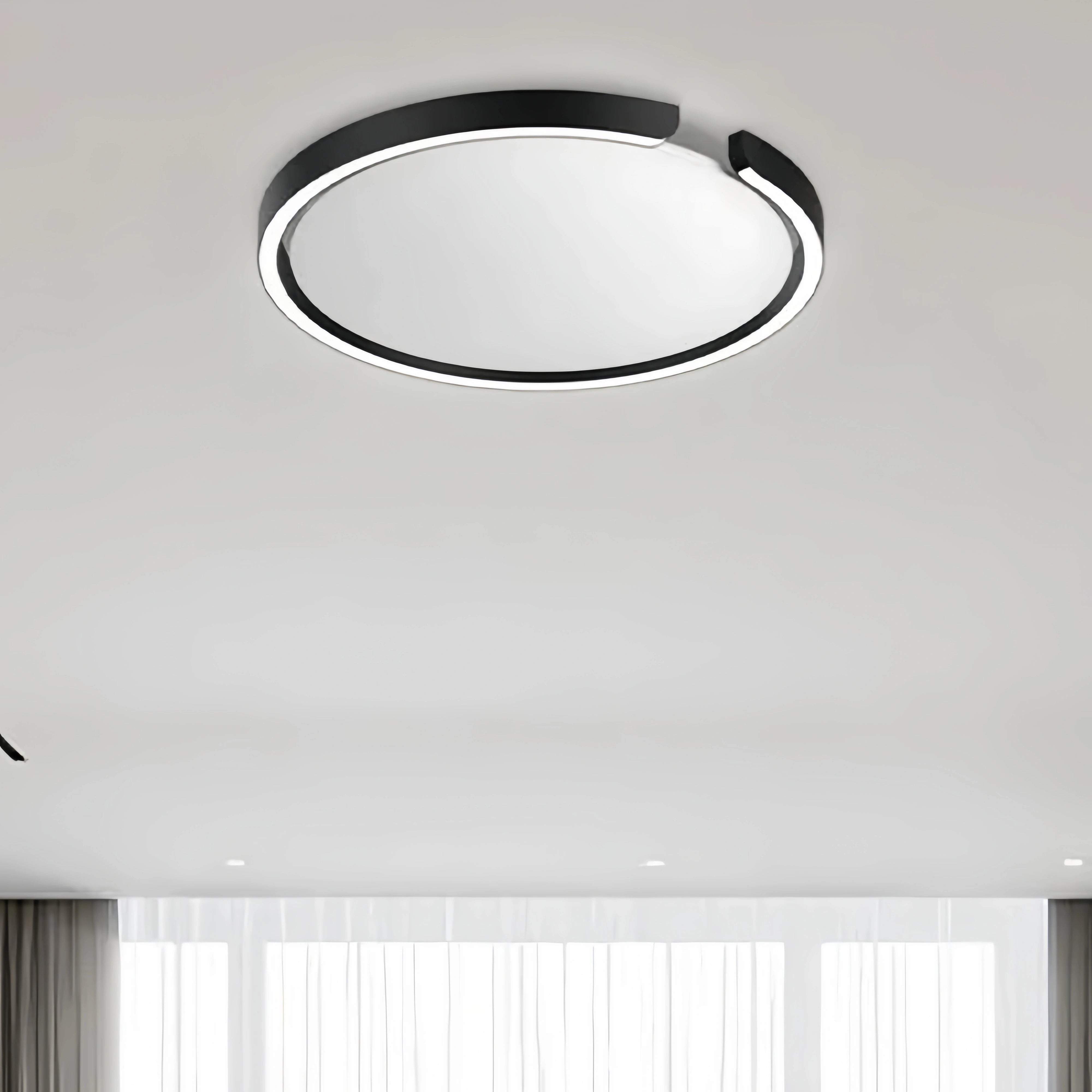 Embrace Modern Ring Flush Mount Ceiling Light – Black Dimmable Metal Lamp Bedroom