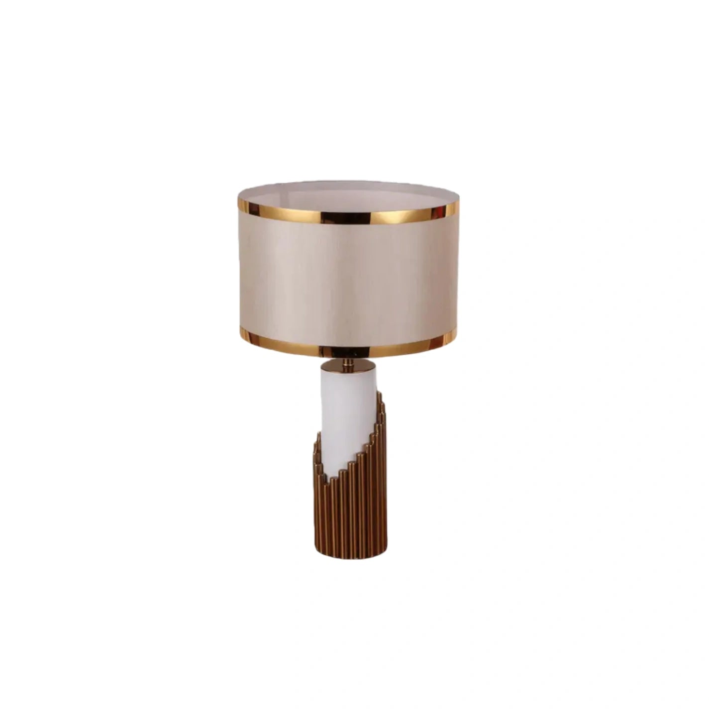 Lunara Royal White & Gold Table Lamp – Cylindrical Metal & Fabric for Bedroom