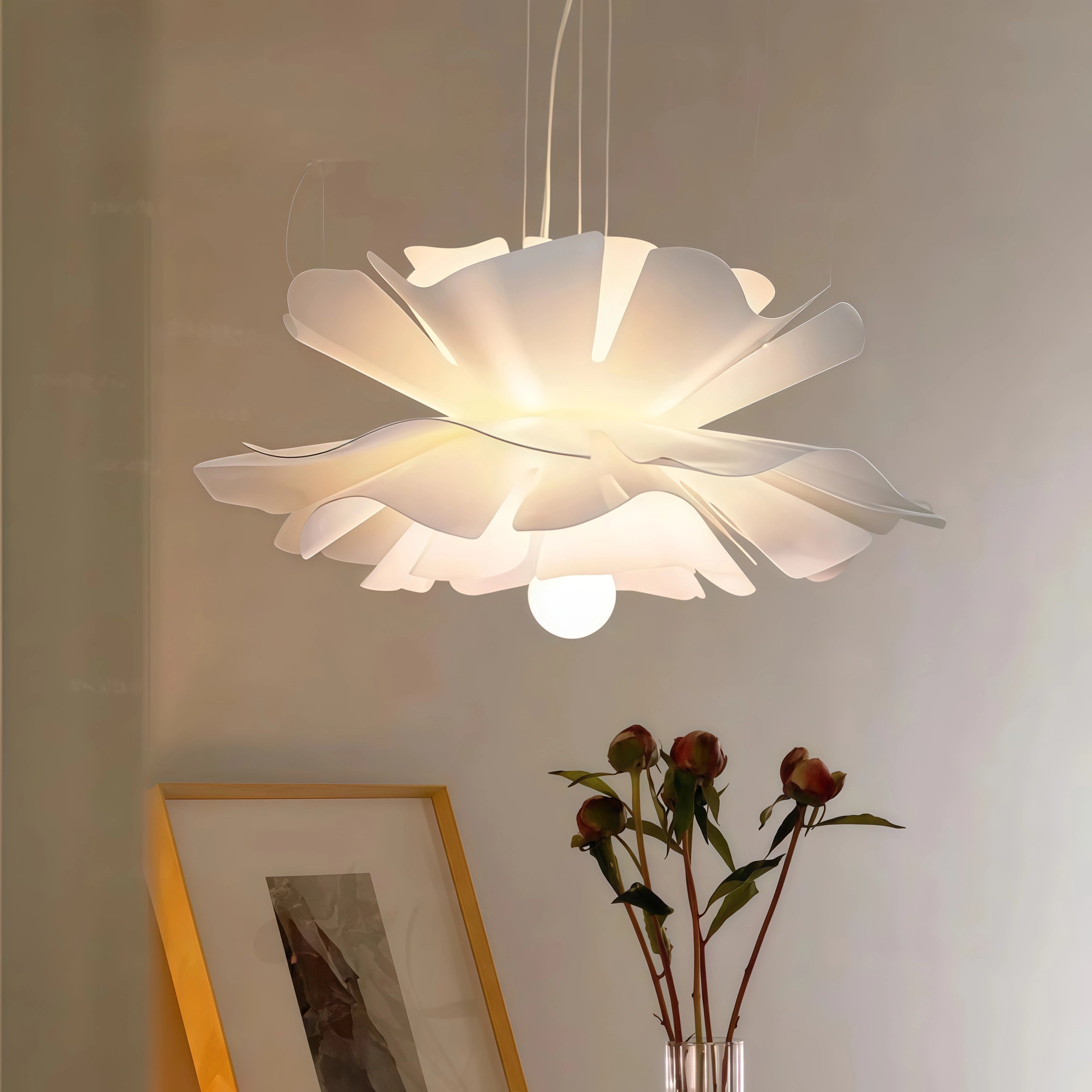 Crema Modern Flower-Shaped Pendant Light – White Metal/Acrylic for Dining Room