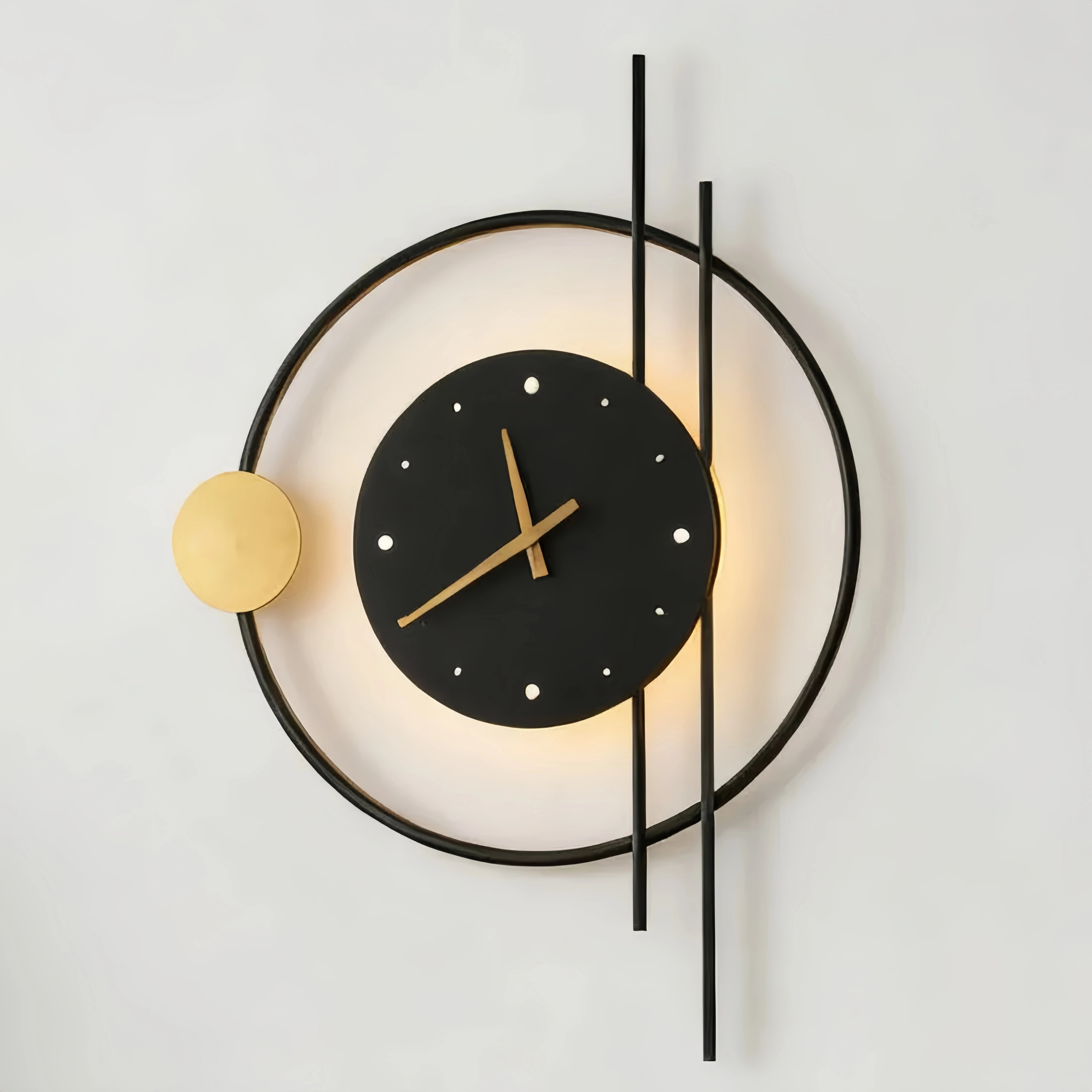 Irondale Art Deco Wall Lamp – Black/Gold Clock-Inspired Design for Living Room