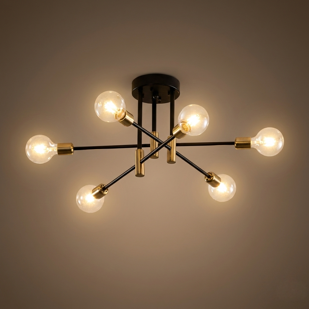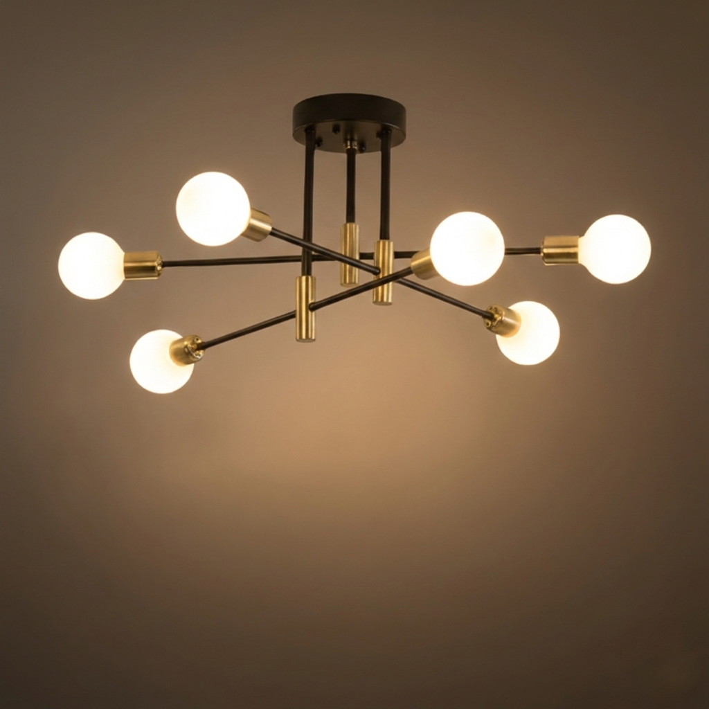 Nebula Moderner, verzweigter Kronleuchter – Schwarze/Goldene Metallleuchte mit 4/6/8 Leuchten für das Wohnzimmer
