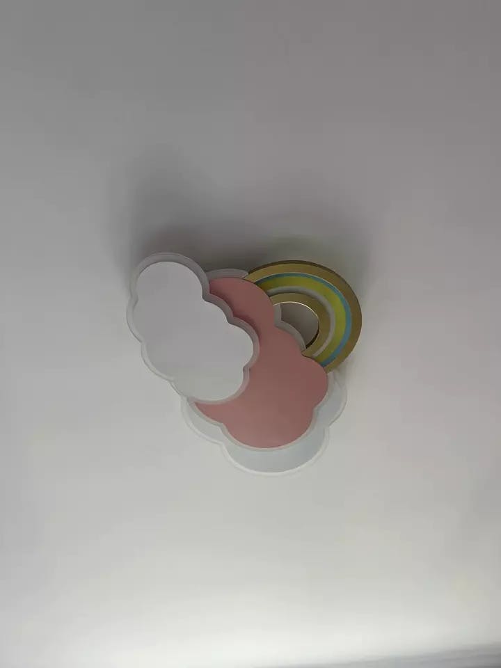 Diese Lampe eignet sich für Kinderzimmer und verleiht ihnen mit ihrem Wolken- und Regenbogenmotiv eine verspielte, magische Note.