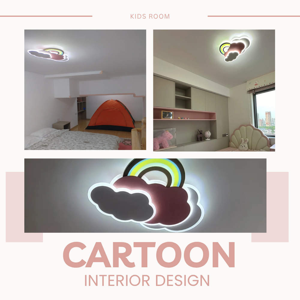 Diese Deckenleuchte im Morandi-Stil besticht durch verspielte Wolken- und Regenbogenelemente und verleiht Räumen eine sanfte, verträumte und künstlerische Note.
