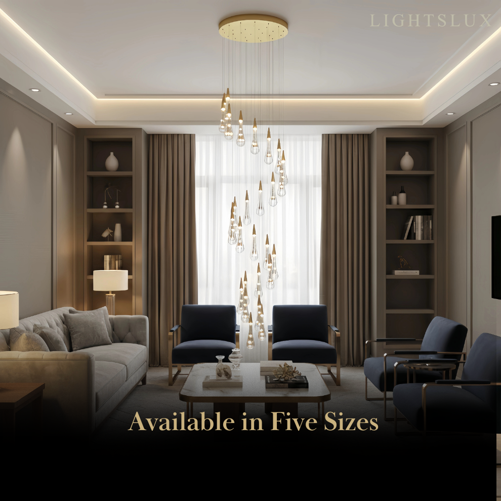 - Available in five sizes to suit various ceiling heights and room proportions, ensuring a perfect fit for any space.