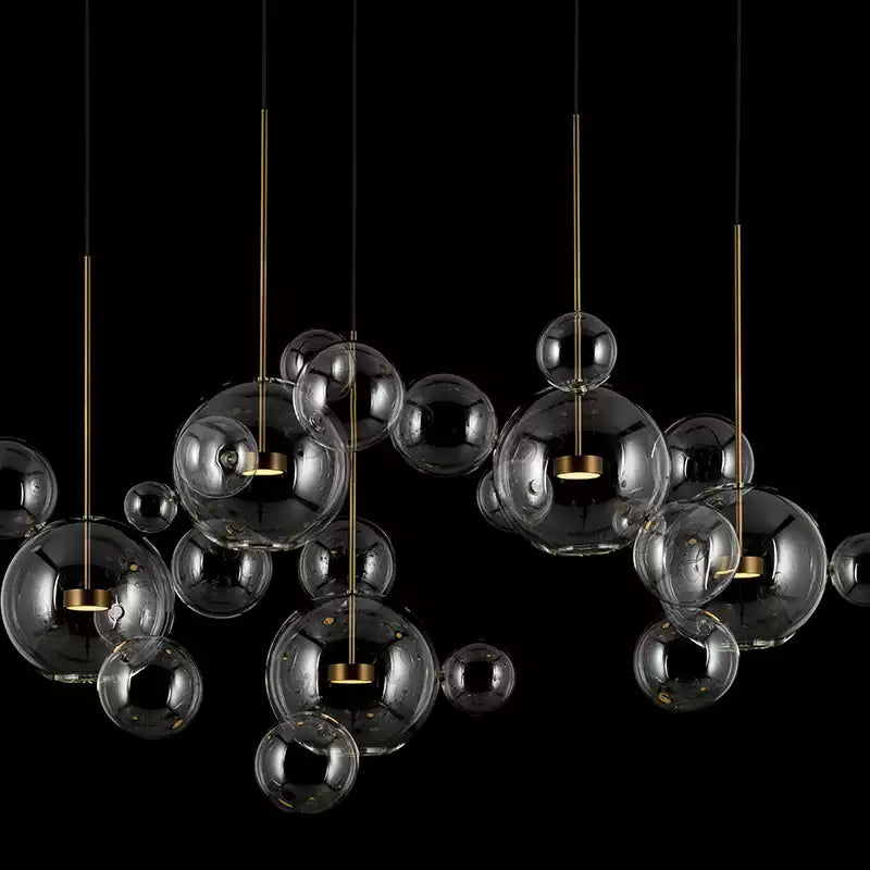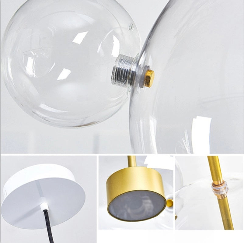 Die gestapelten Glaskugeln werden von einem eleganten Goldstab ergänzt. Das mehrschichtige Design verleiht dem Raum eine raffinierte Note und eignet sich für moderne Wohn- oder Essbereiche.