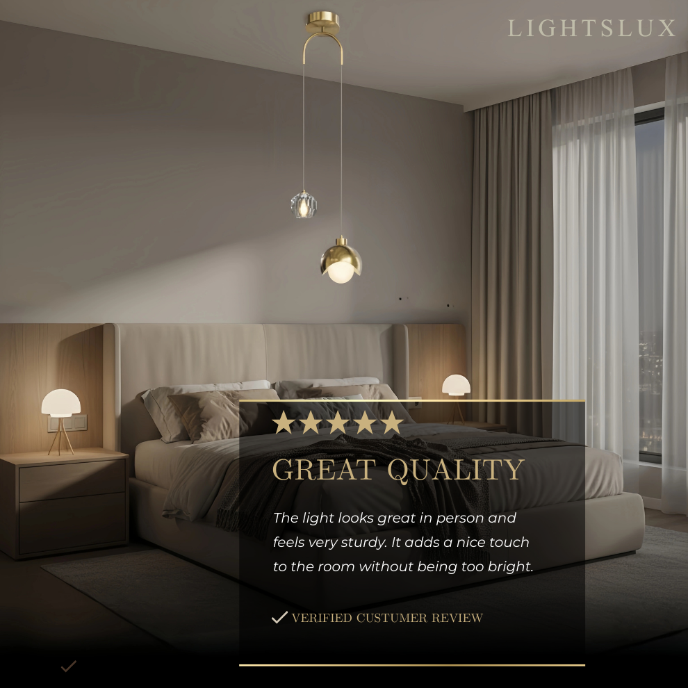 Designed to serve as a striking decorative centerpiece above bedside areas, dining tables, kitchen islands, and throughout the home.