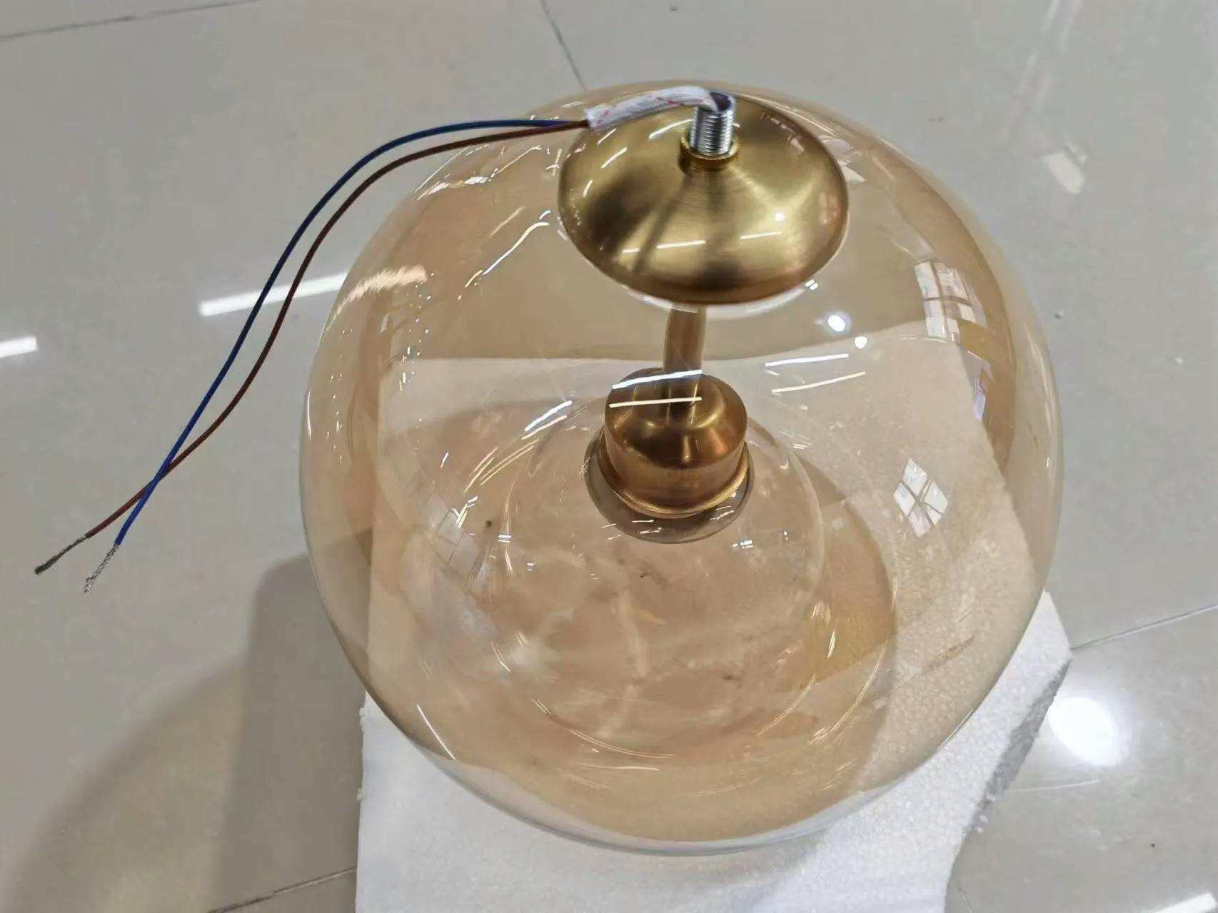 Diese elegante, metallgerahmte Glaskugel verströmt warmes Umgebungslicht und trägt so zu einer einladenden Atmosphäre bei, die sich sowohl für Eingangsbereiche als auch für gemütliche Essbereiche eignet.