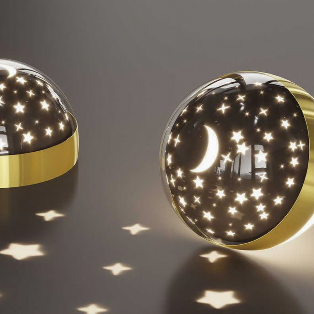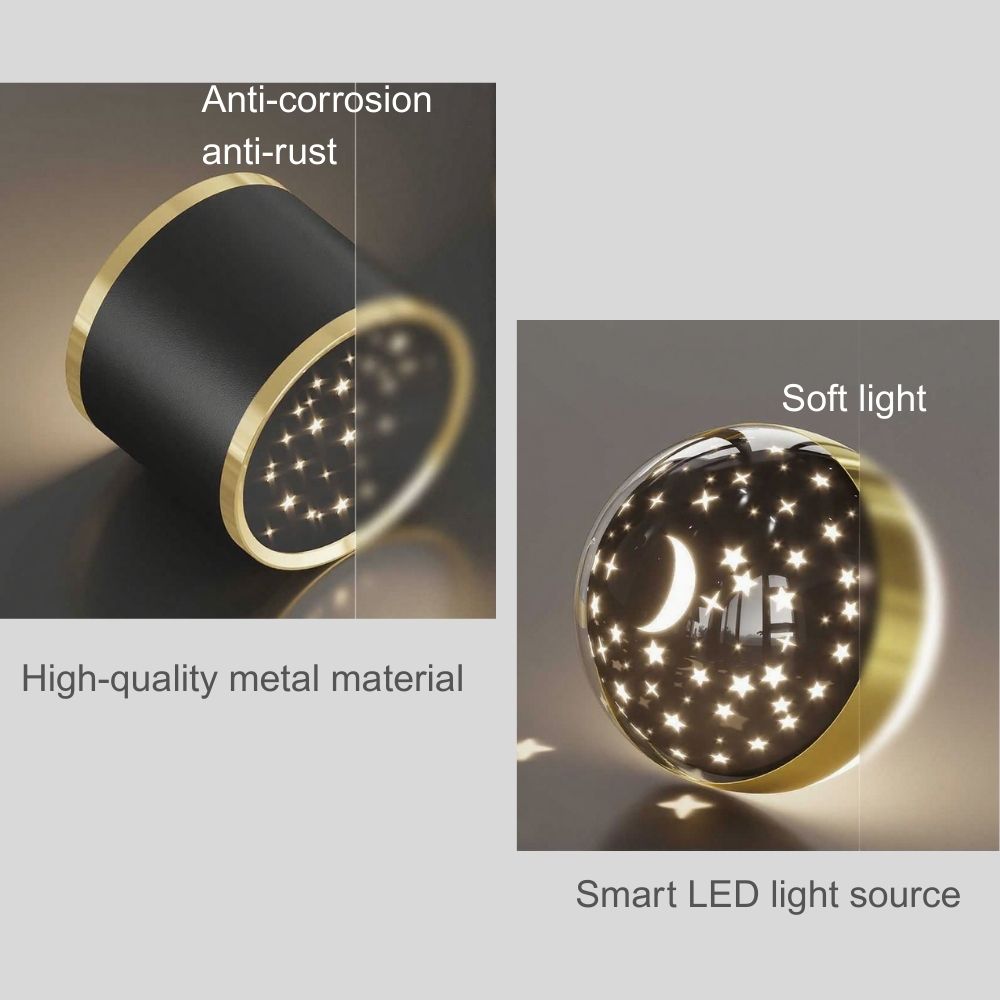 Feine Mond- und Sternmuster im Inneren der Glaskugel erzeugen sanfte, dekorative Schatten und verleihen ihr eine verspielte und romantische Note.
