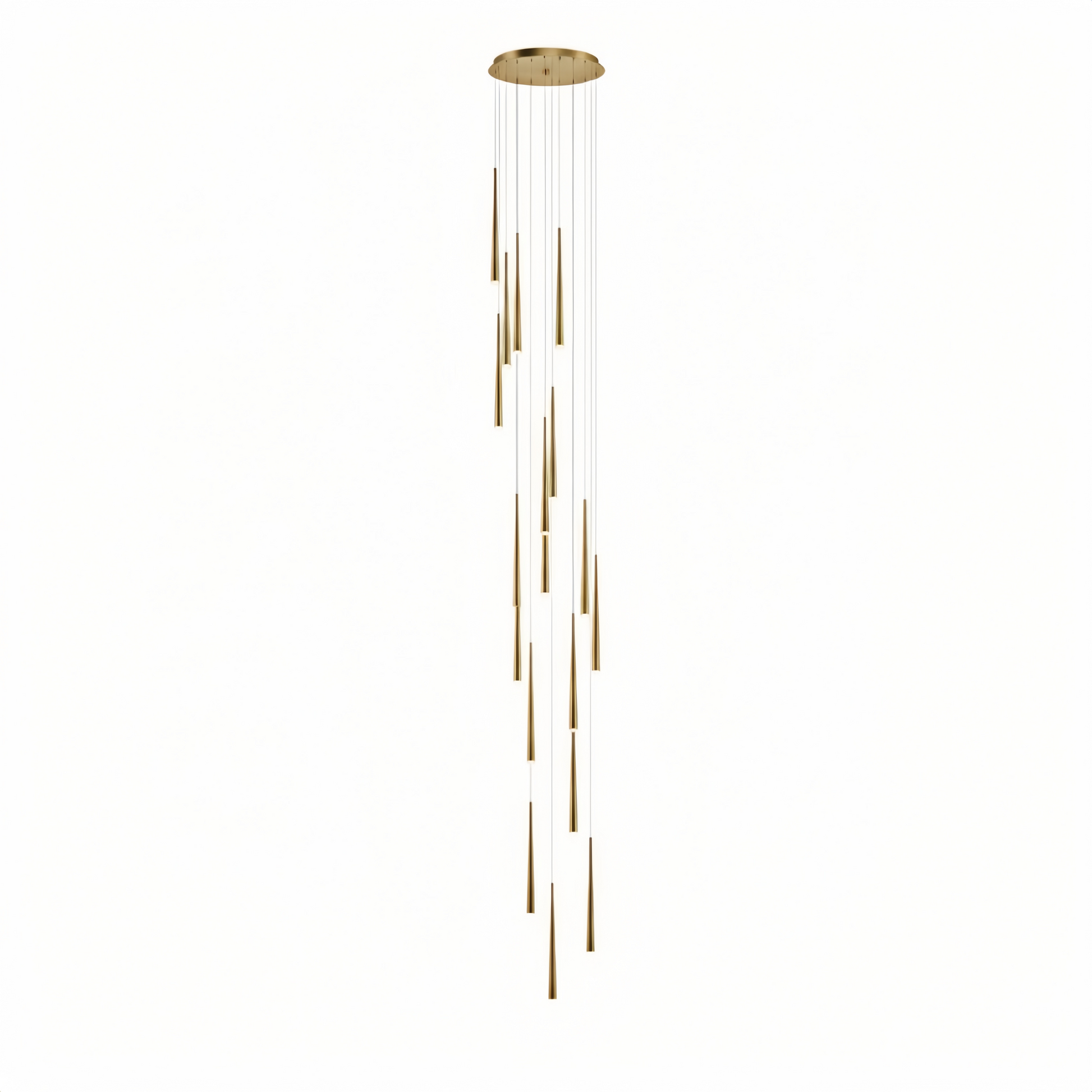 Luxurious gold‑finish iron chandelier with a multi‑light cluster design and adjustable hanging length.