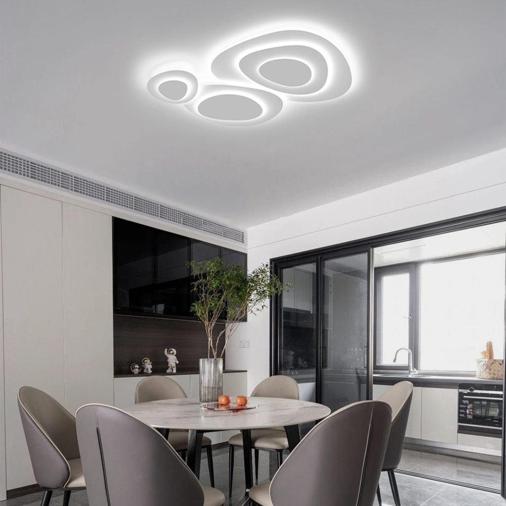 Diese wolkenförmige Pendelleuchte besticht durch ihr modernes Design und spendet ein sanftes, diffuses Licht. Sie eignet sich für Wohnzimmer und andere Innenräume und ergänzt zeitgenössische Einrichtungen mit ihrer dezenten, dekorativen Präsenz.