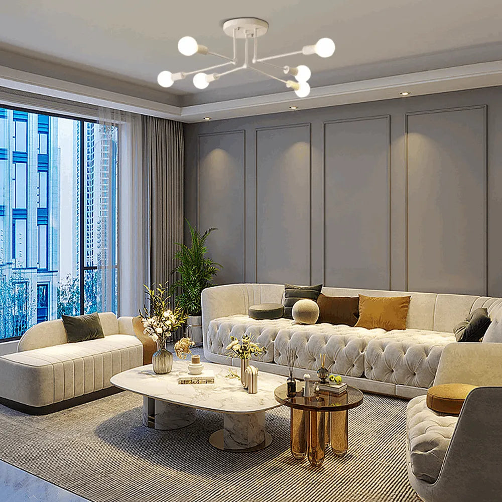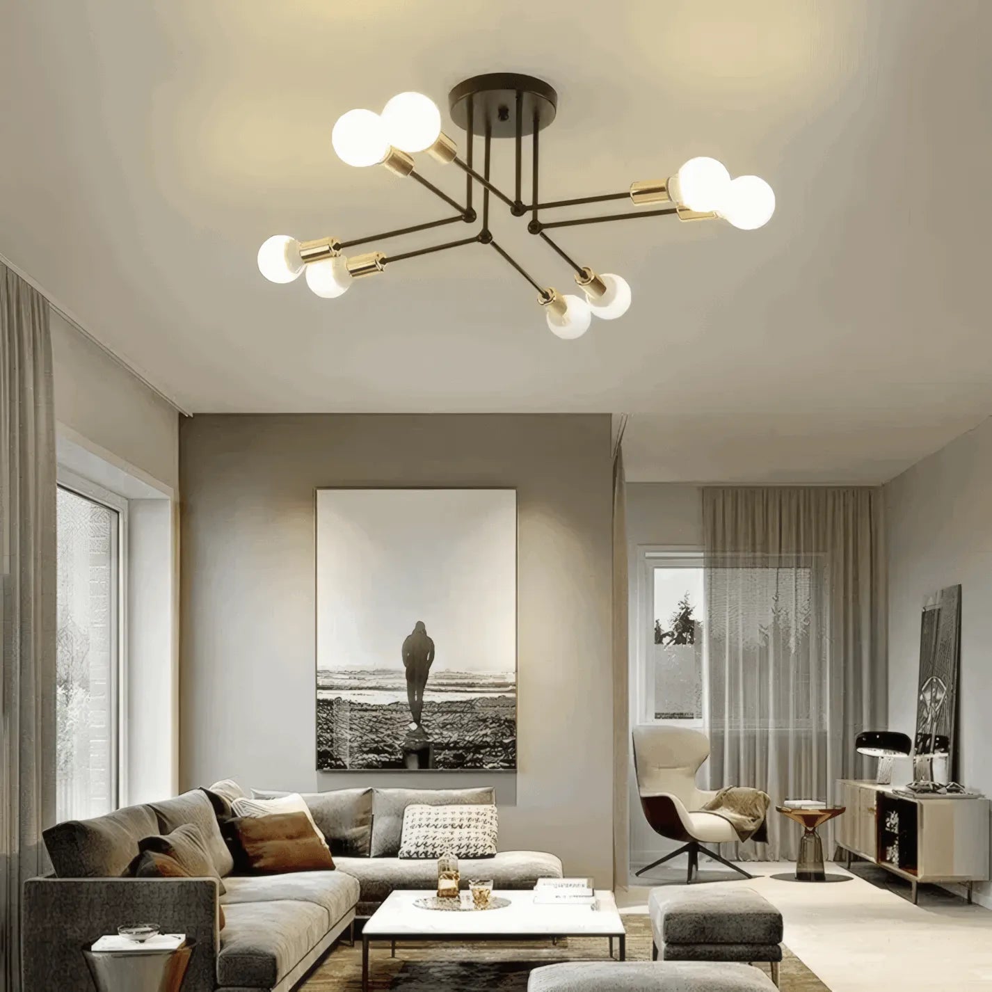 Das Design ist vom Sputnik inspiriert und zeichnet sich durch verzweigte Arme aus, die den Räumen eine moderne, dynamische Note verleihen.