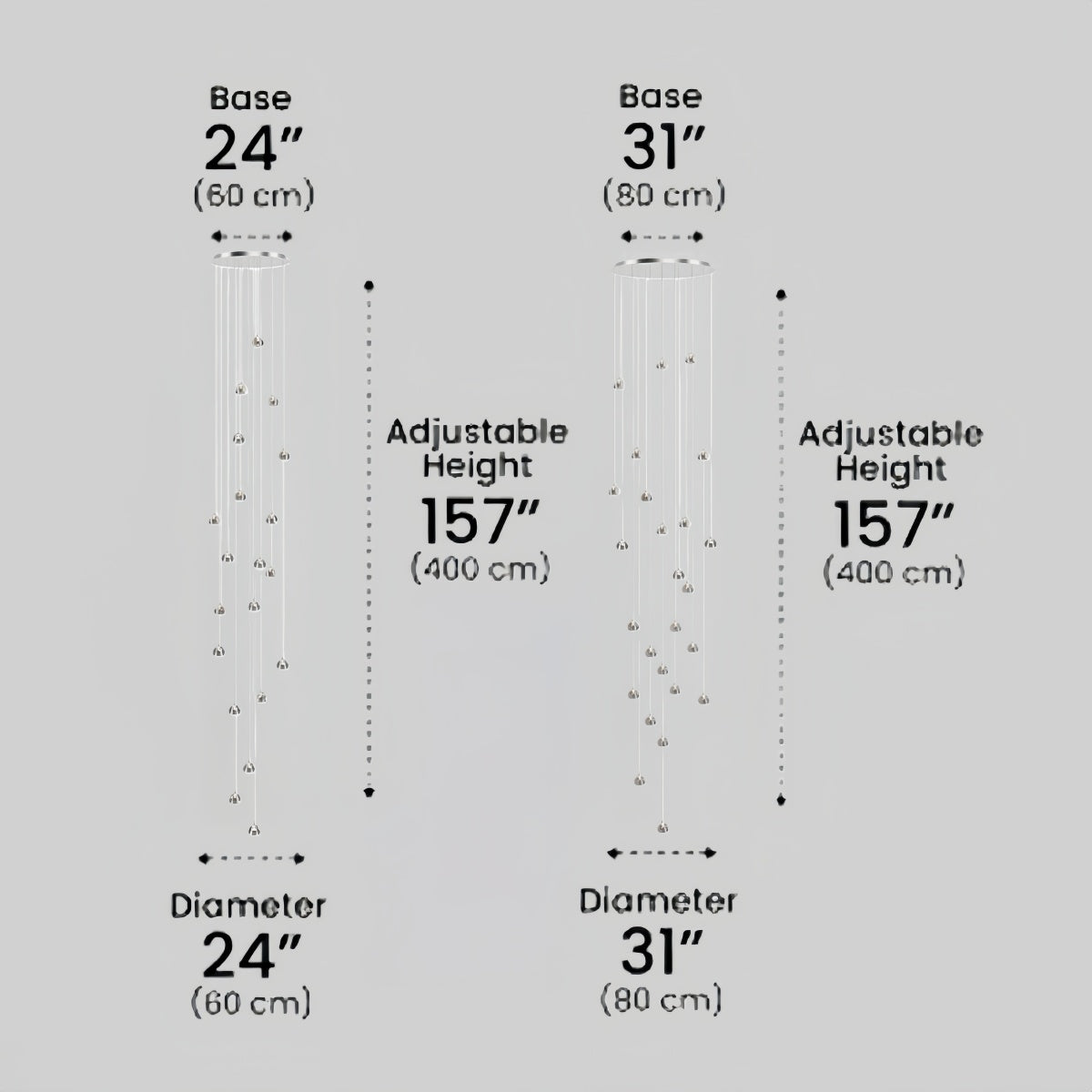- Each crystal is individually suspended for a dynamic visual effect, with clear, high-quality glass ensuring maximum light transmission and brilliance.