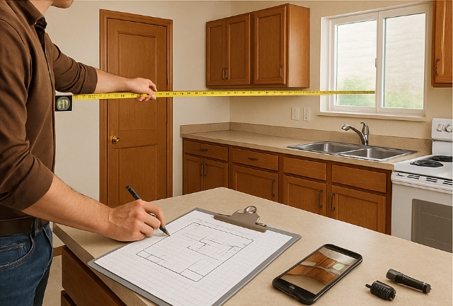 Start by getting the right measurements before picking a kitchen island. Use a steel tape or a laser tool for the best results. Draw your kitchen on graph paper or use an app. Mark where all doors, windows, and utilities are. Measure the kitchen’s length and width in inches. Write down the total square footage. Notice any columns, walls, or things that might get in the way.