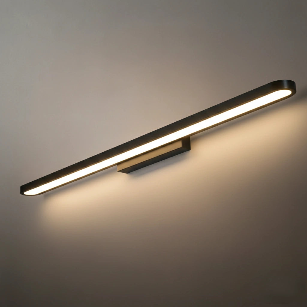 Lámpara de tocador lineal minimalista Arcato – Metal negro/dorado y acrílico para baño