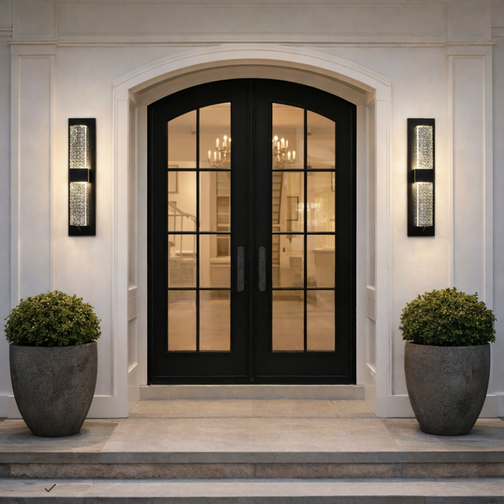 Arcato Modern Outdoor Wall Sconce with Crystal Acrylic Accents - Sleek Black Finish