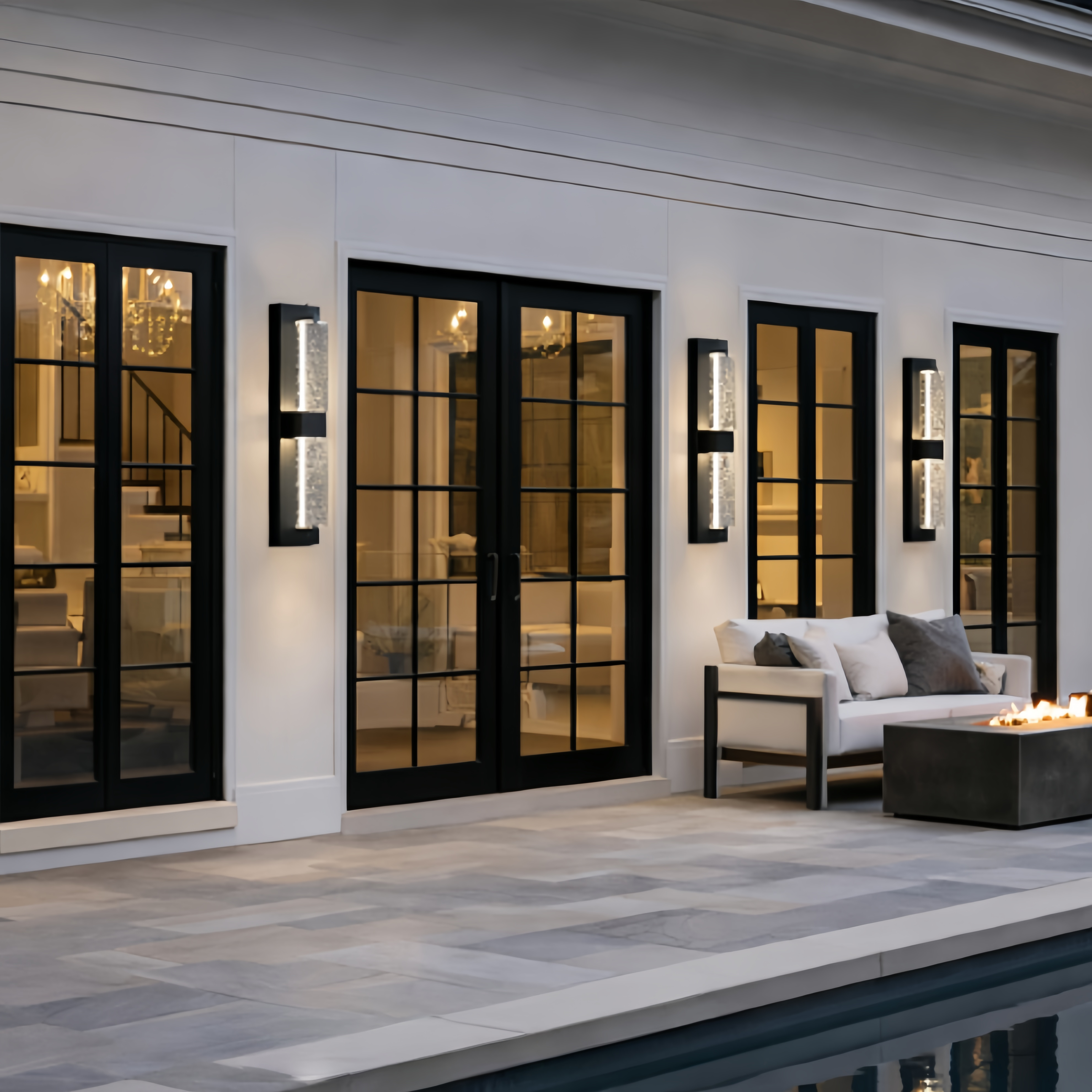 - Features an elongated silhouette with crystal-like illuminated accents, creating a soft, multidirectional glow that enhances modern architectural exteriors.