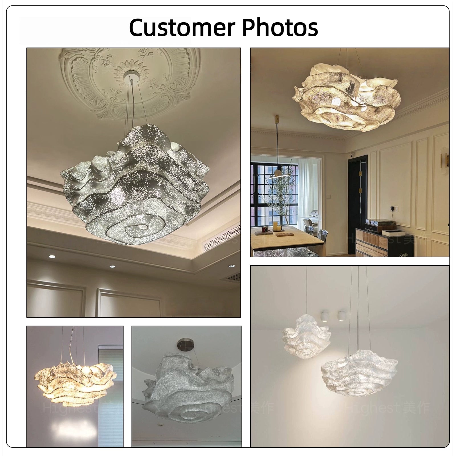 Lámpara colgante blanca Excelis Art Deco con forma de nube – Accesorio metálico para sala de estar