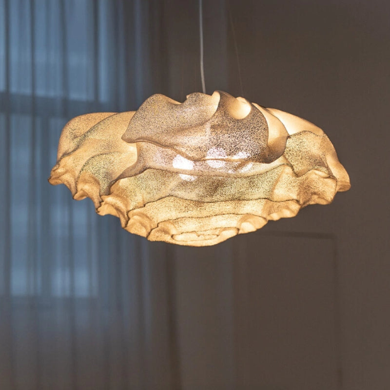Confeccionada con un material texturizado similar a la tela. Su delicada superficie en capas le añade un toque artístico, ideal para interiores modernos y elegantes.