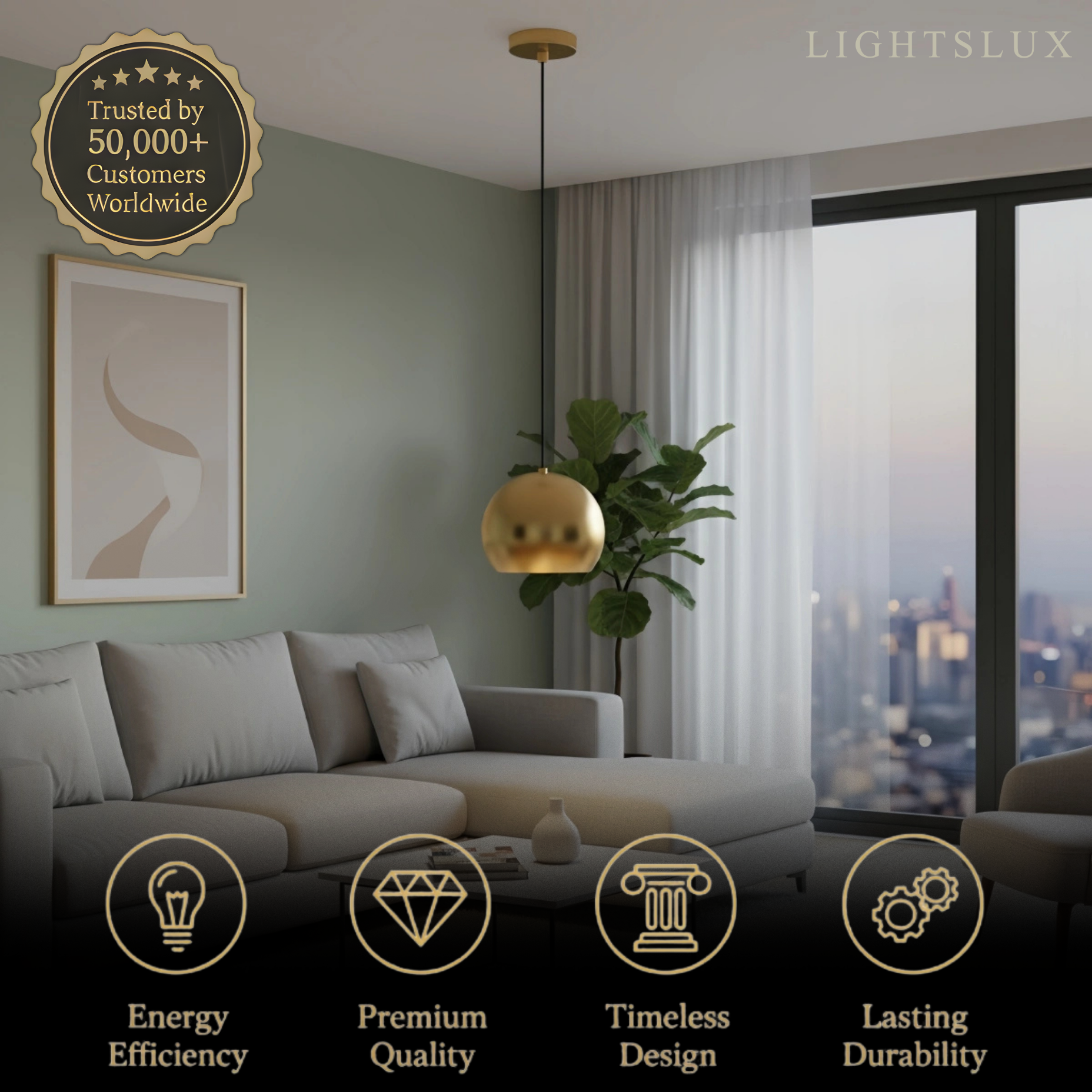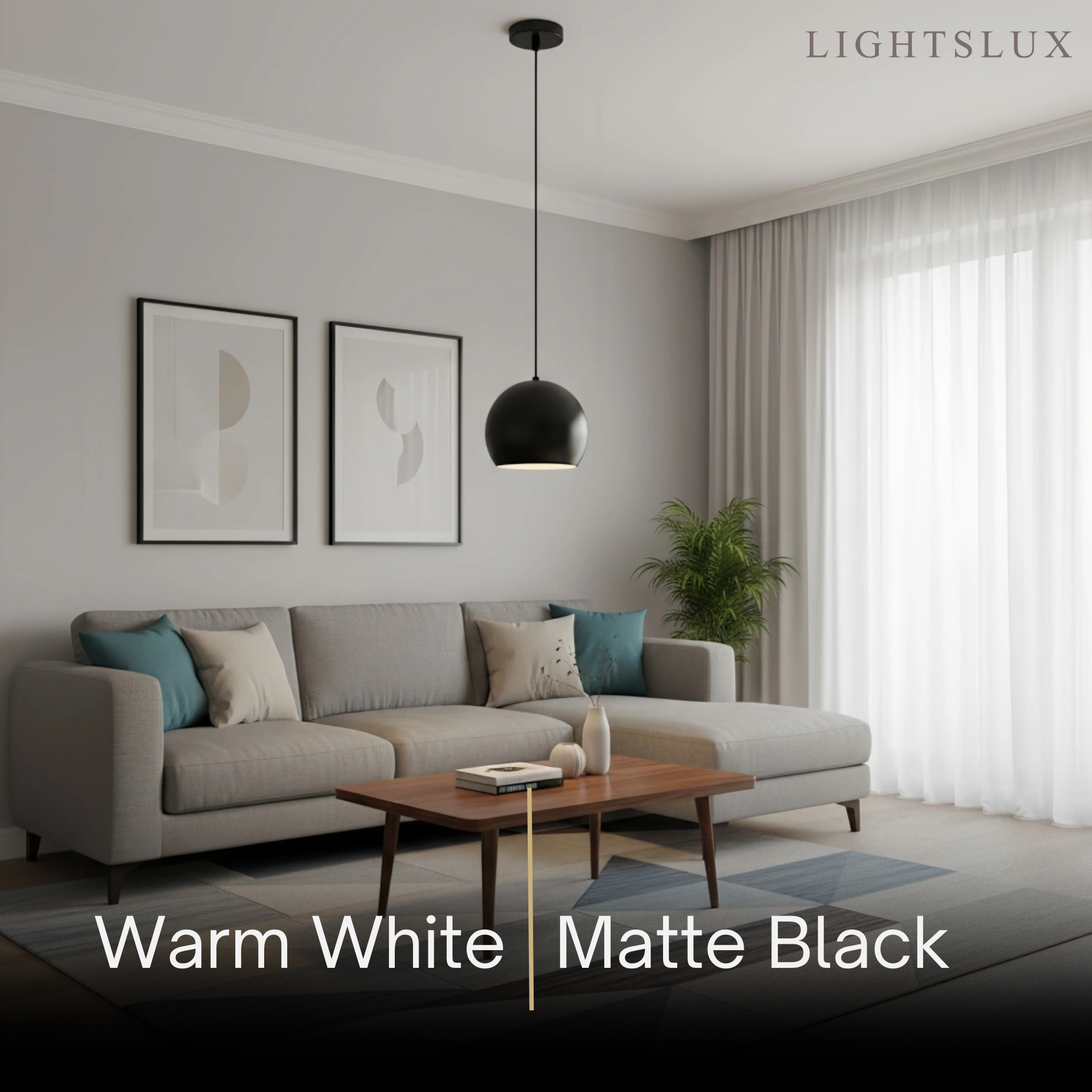 This pendant light blends modern simplicity with mid-century elegance, showcasing a clean, dome-shaped silhouette in a choice of brushed gold or matte black. Emitting a warm and inviting glow, it effortlessly enhances any space—from living rooms and bedrooms to kitchen islands—offering both visual charm and functional comfort in one refined fixture.