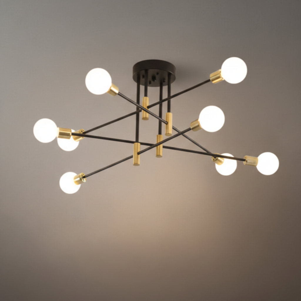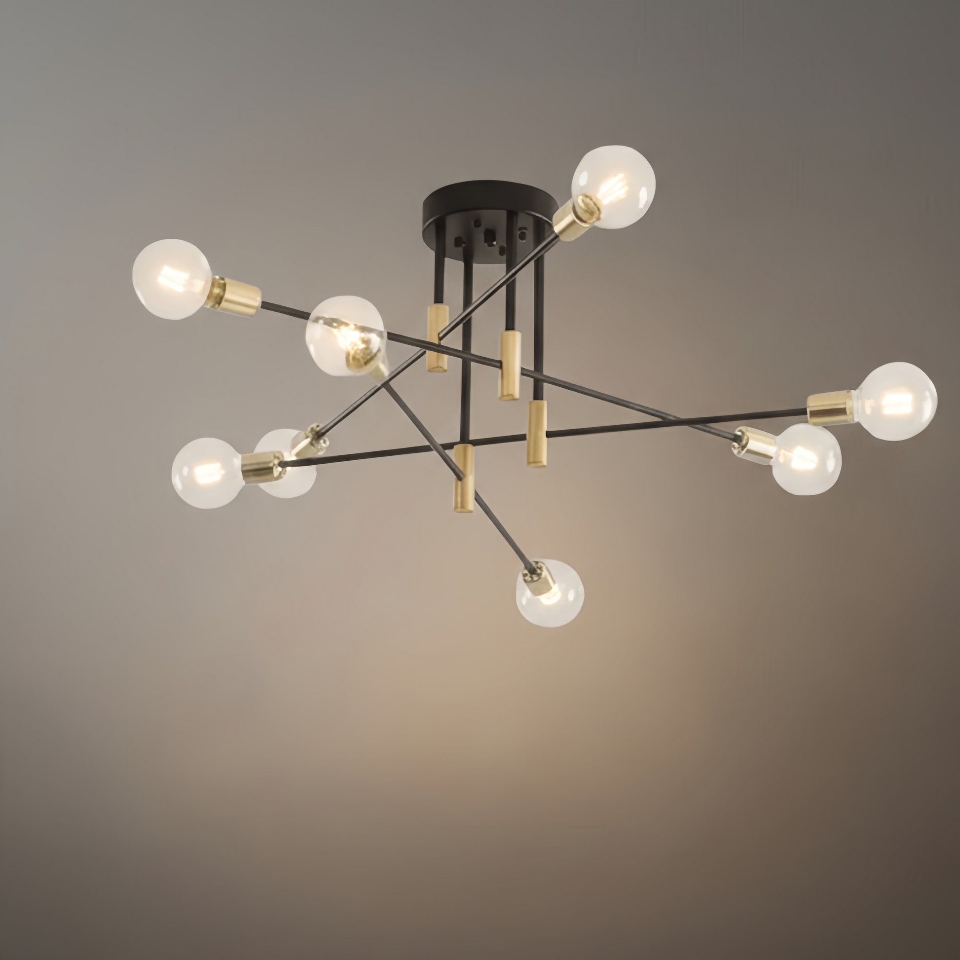Ideal para salones, su diseño multilumínico sirve como punto focal contemporáneo, realzando sutilmente la decoración del espacio.