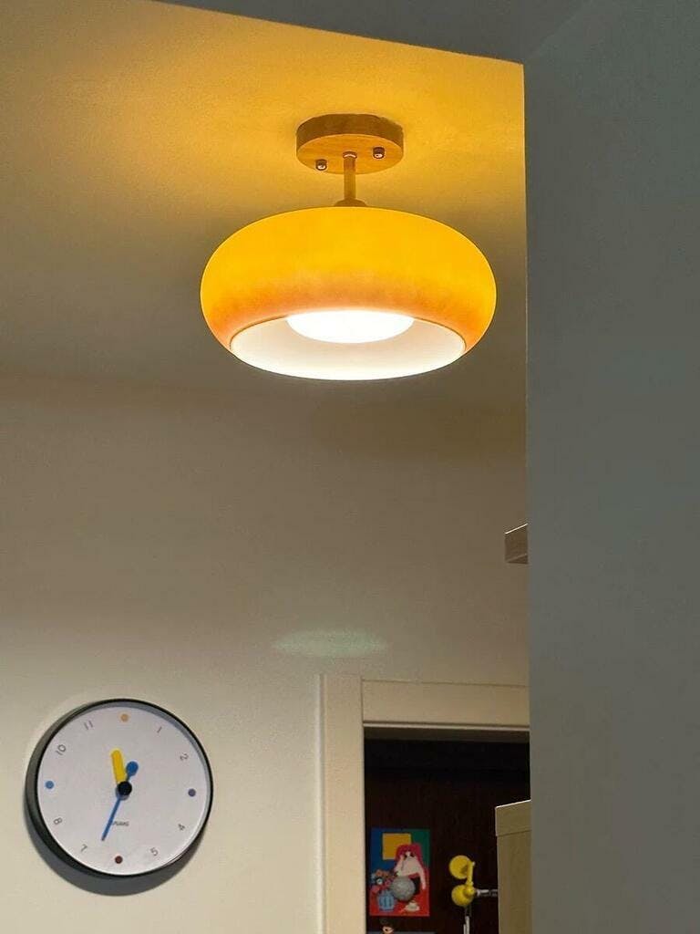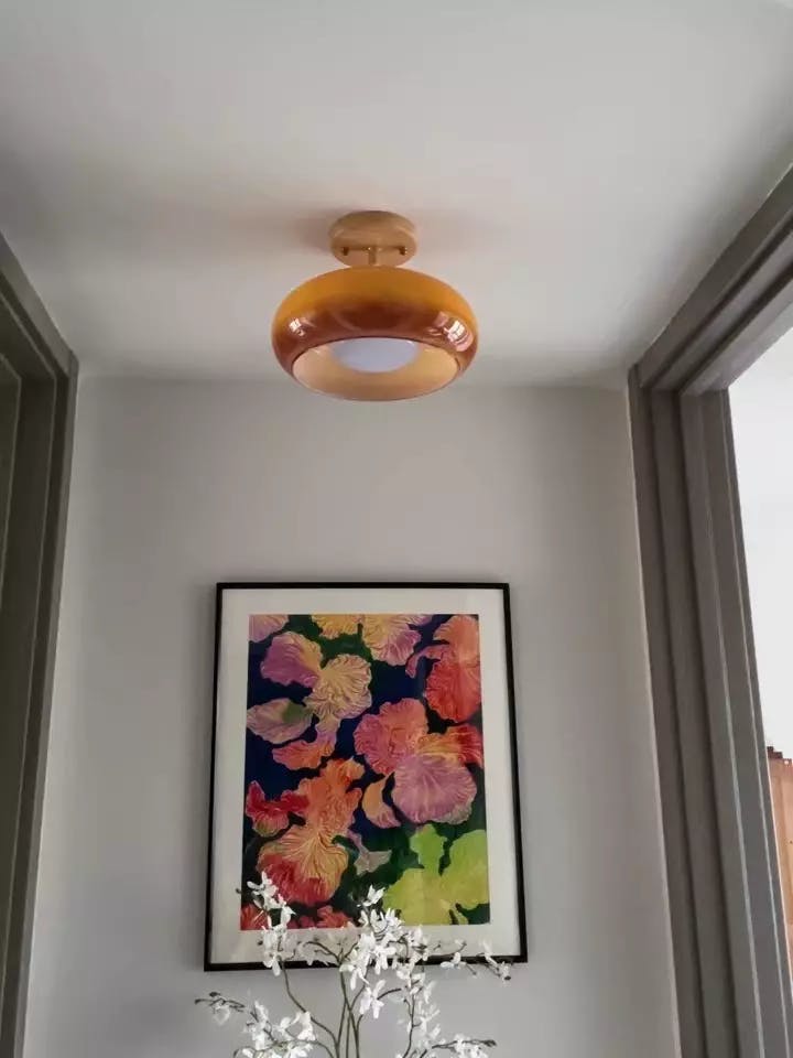 Lámpara de techo Crema - Moderna, Madera Naranja/Blanca, Cristal, LED