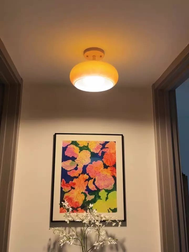 Emite una luz cálida y acogedora. La pantalla de cristal suaviza delicadamente la iluminación, creando una atmósfera relajante ideal para dormitorios o salas de estar.