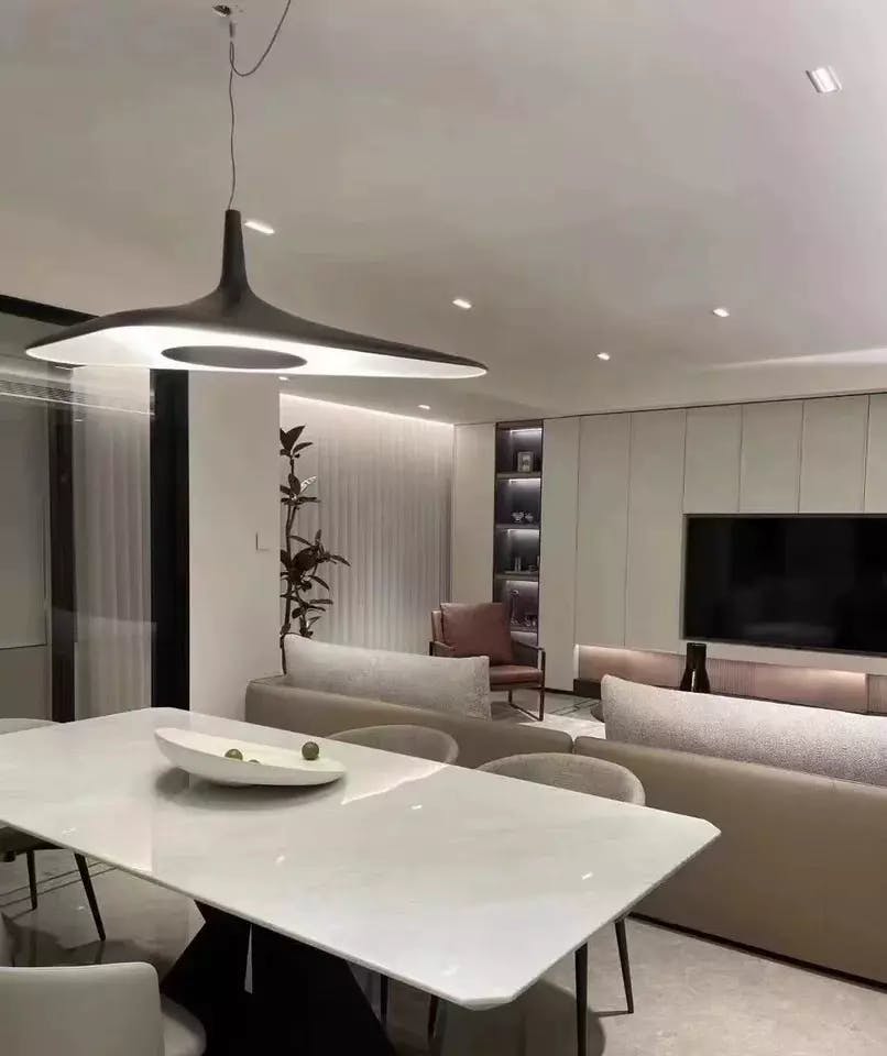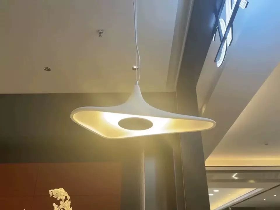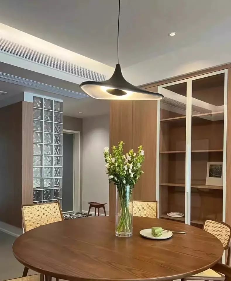 La forma de la lámpara parece ligeramente diferente desde distintos ángulos, introduciendo una sutil variación visual y un discreto elemento artístico en los interiores modernos.