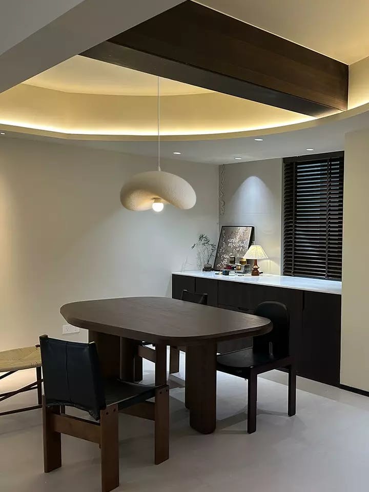 Funciona a la vez como fuente de luz ambiental y elemento decorativo, complementando los tonos de madera y las paletas neutras en interiores sofisticados.