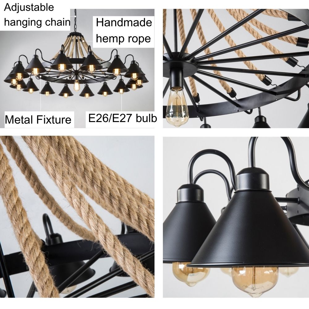 Combina metal, cuerda de cáñamo hecha a mano y bombillas E26/E27 para un diseño robusto con un atractivo vintage y rústico.