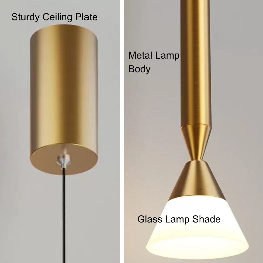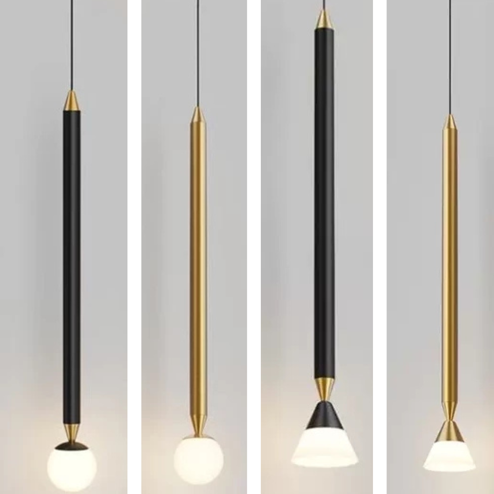 Available in black or gold, with globe and cone shapes that complement different interior styles and provide a subtle accent.