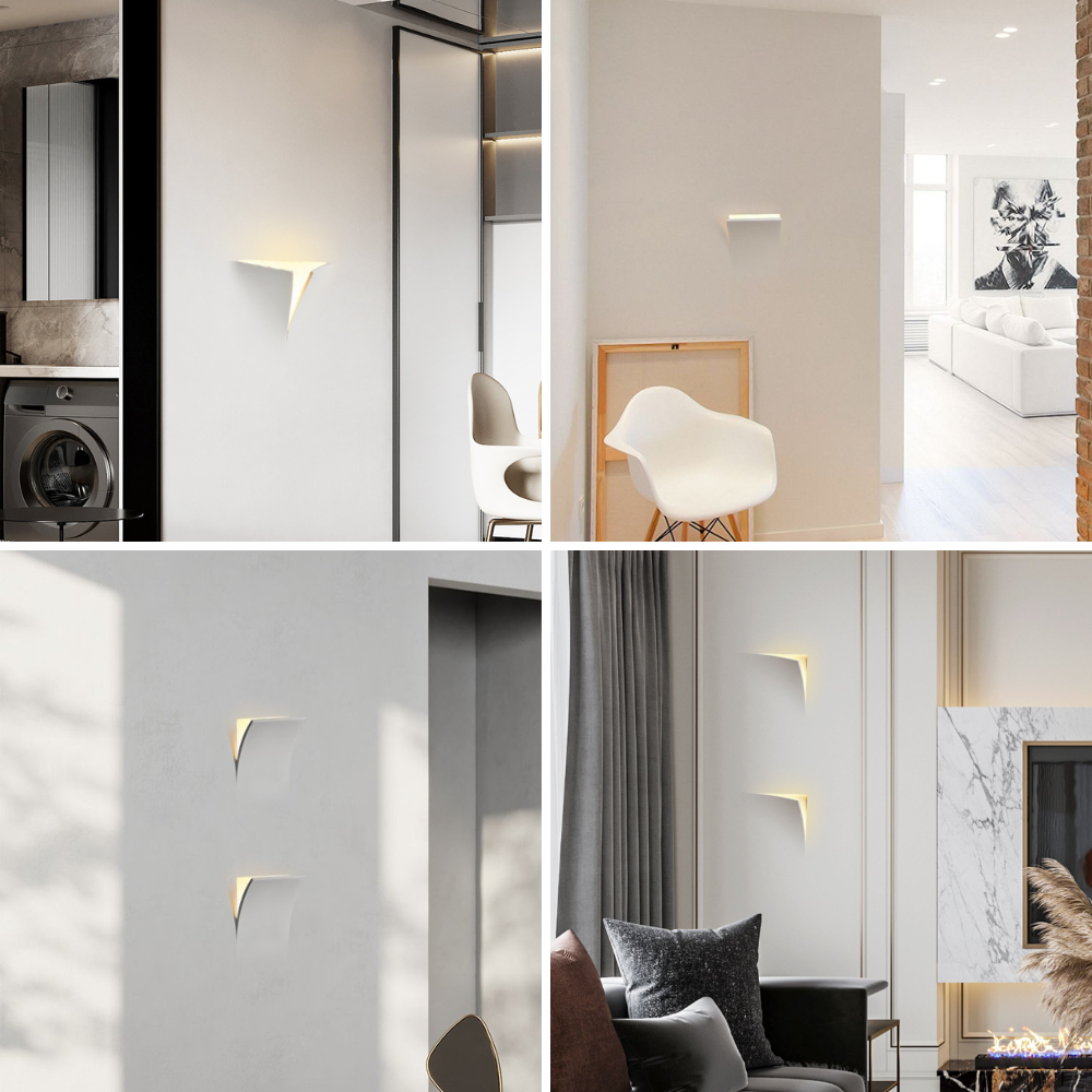 Enhance modern interiors with this art deco-inspired wall lamp, featuring a sleek square design and a subtle folded element at its center. Crafted from durable metal and smooth gypsum, this lamp combines strength with elegance, making it a versatile addition to living rooms, dining areas, or bedrooms. Its clean lines and minimalist silhouette contribute to a refined aesthetic, while the warm LED light provides a soft, inviting glow. Suitable as both a functional light source and a decorative accent, this wall lamp balances form and function with understated style.