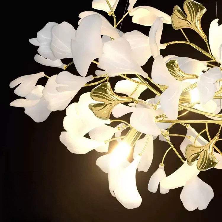 Excelis Art Deco White Chandelier – Metal/Acrylic Gingko Design for Living Room