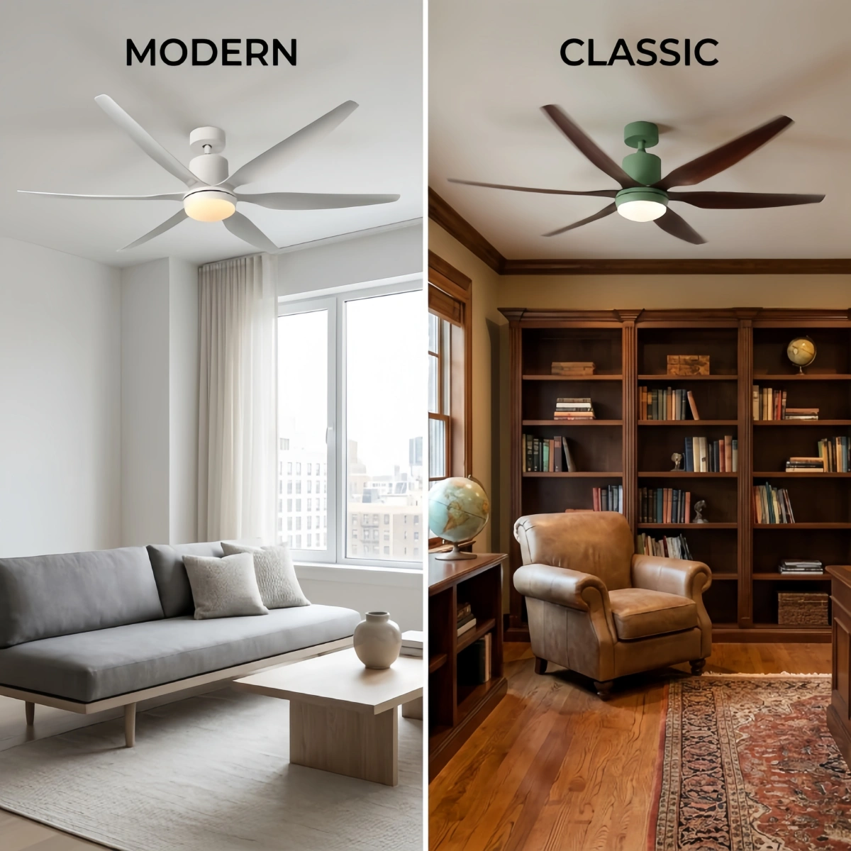 Featuring a clean mid-century silhouette with earthy color options, this fan blends effortlessly into both modern and classic interiors.