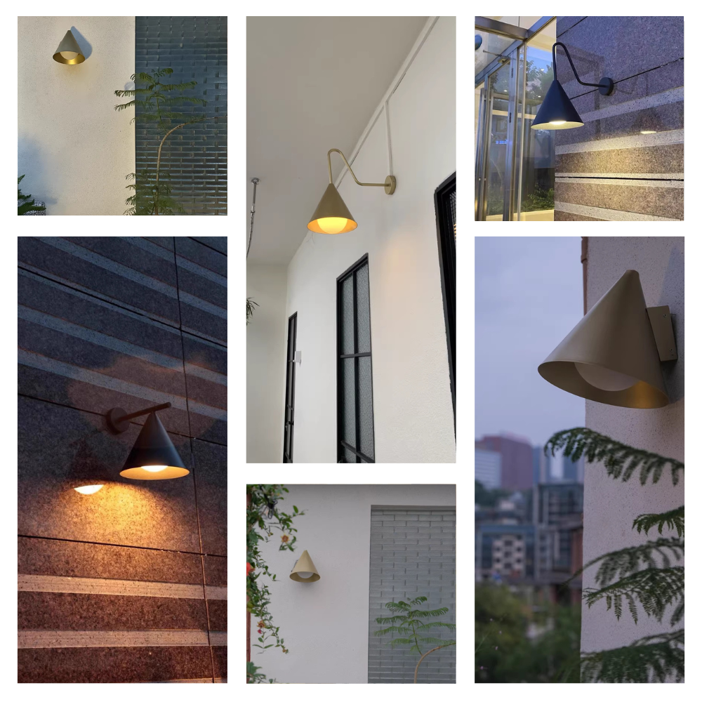 Irondale Minimalist Conical Outdoor Wall Lamp – Black Metal Light for Exterior Wall