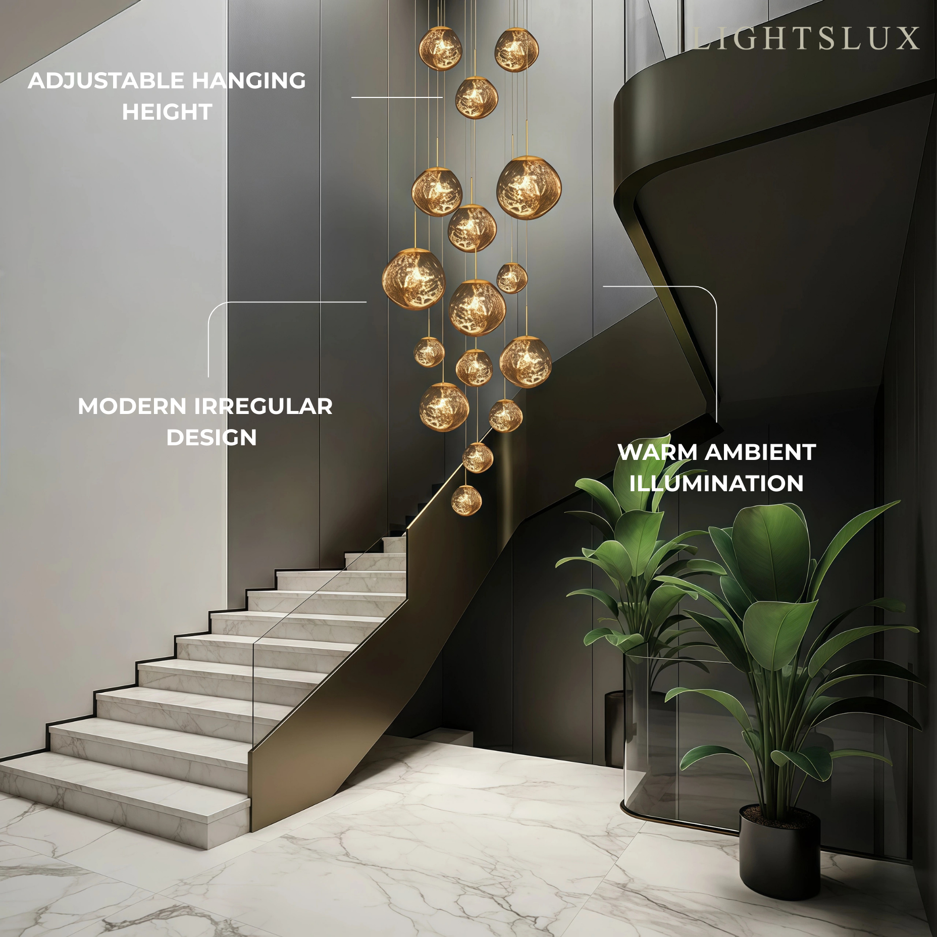 - Hanging Cable: Standard 150cm (59″), adjustable/extendable upon request
