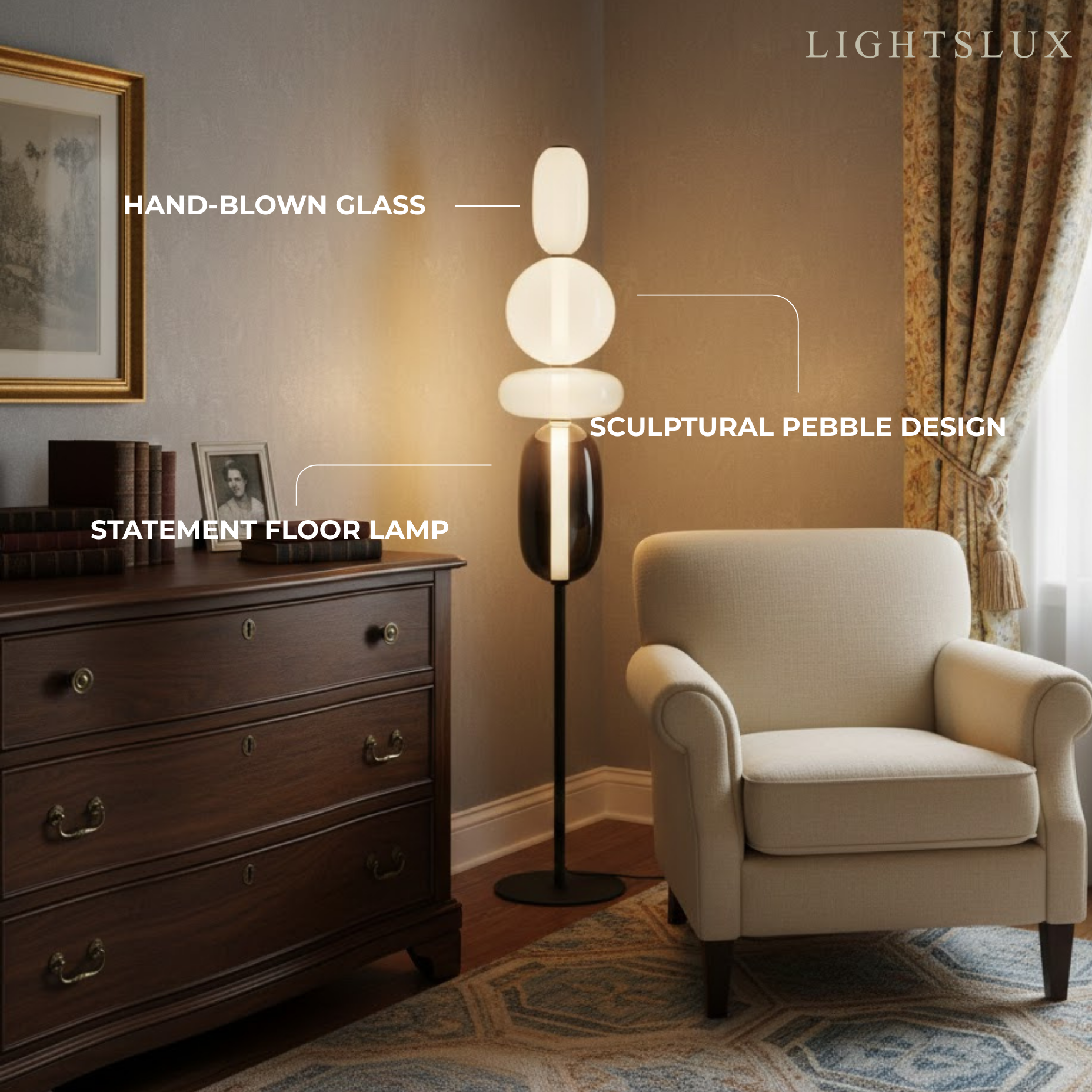 Elegant lighting warms the space. A ceiling fixture or floor lamp adds style to the living room.