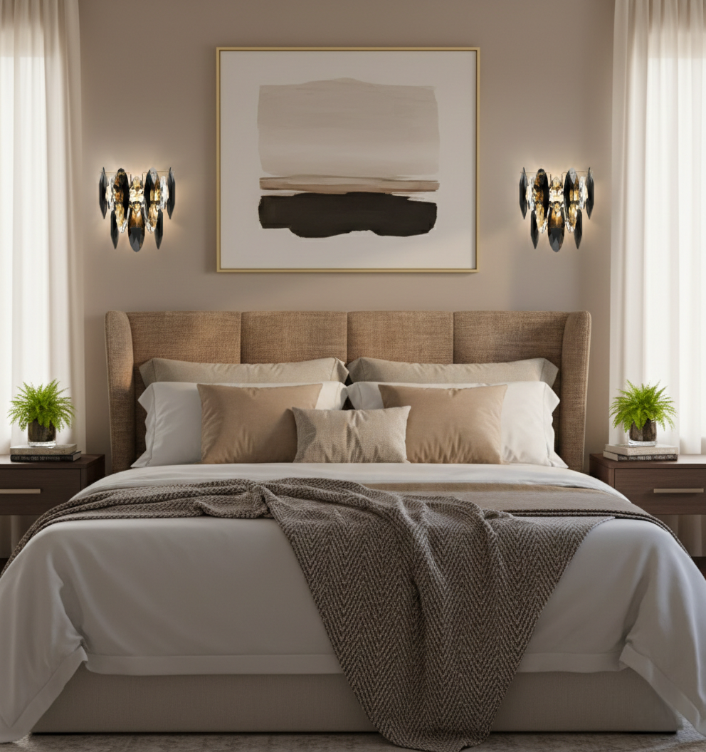 Complement your space with these crystal sconces—an elegant indoor lighting solution that brings sophistication to any wall. Featuring the same luxurious smoky grey, clear crystal, and gold palette as the Celestial pendant, each sconce adds a touch of sparkle and ambient warmth. Perfect for framing living room artwork, illuminating bedside corners, or enhancing entryways, they create a cohesive and elevated aesthetic throughout your home.