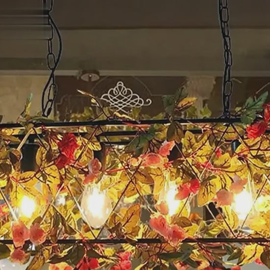 Add a subtle touch of style with this art deco-inspired pendant light, combining natural charm with modern elegance. Its rectangular metal frame is accented with artificial flowers and leaves in soft pink and green tones, creating a decorative focal point. Suitable for living rooms, dining areas, or commercial spaces such as cafes and home stays, it brings a warm, inviting atmosphere. The sturdy metal construction provides lasting durability, while the detailed floral design adds an organic, artistic element, making it a versatile option for both residential and decorative lighting.
