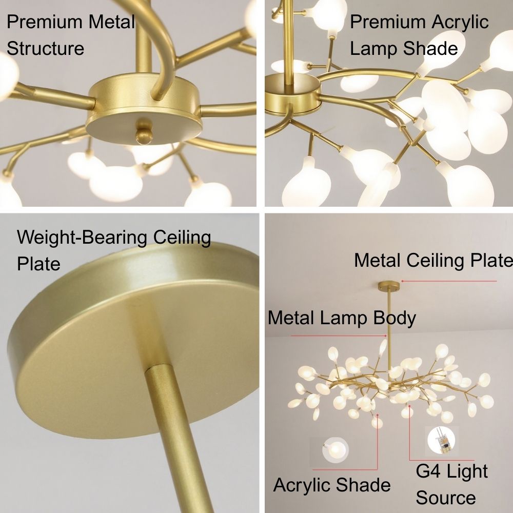 • Organic Modern Design: Features 70/80/115 cm (27.6"/31.5"/45.2") diameter branch-like metal frames with glass-encased LED "fireflies"