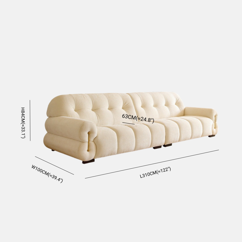 A French cream-style marshmallow sofa with soft fabric upholstery, cloud-like comfort, and a modern minimalist design perfect for small spaces.