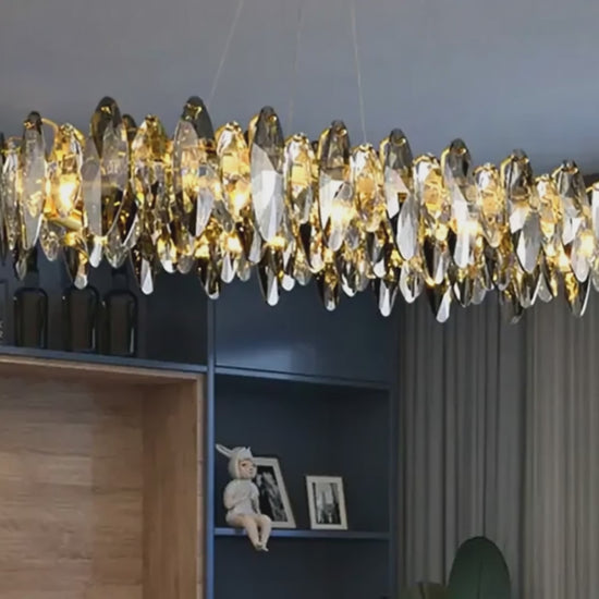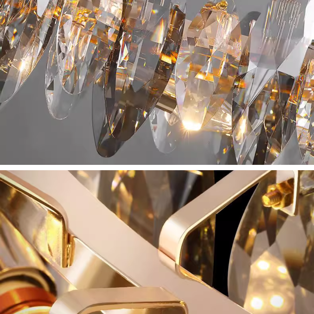 This chandelier adds a subtle touch of luxury with its polished metal frame and sparkling crystal details, enhancing both modern and classic interiors. Suitable for bedrooms, dining rooms, or living areas, it provides a warm, elegant glow while combining style and function.