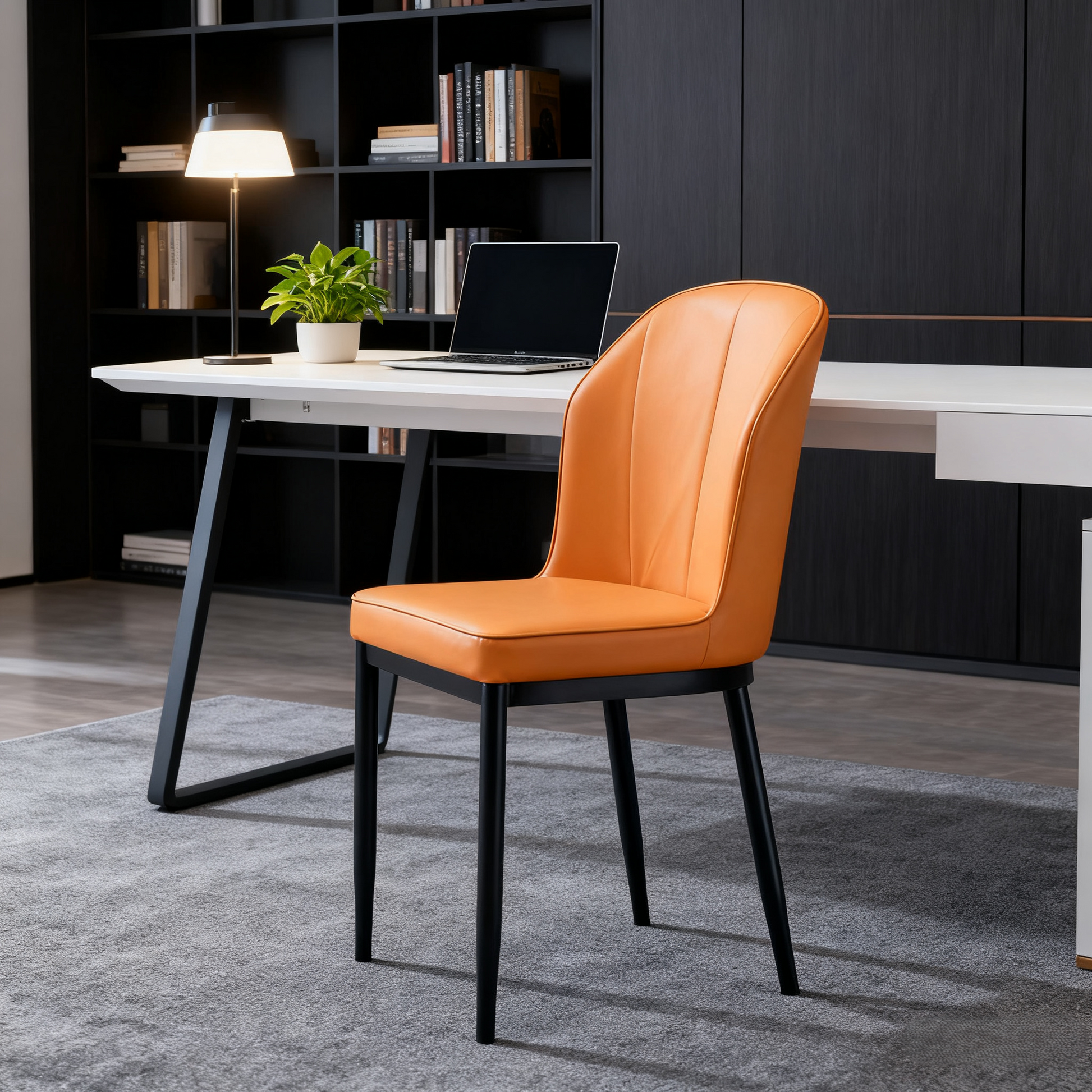 Crafted with a metal frame, this dining chair is designed to offer reliable support in daily use. The seat includes high-resilience foam to provide a comfortable sitting experience, while the leather-like upholstery brings a modern and refined touch. Its clean lines and balanced proportions complement of interior styles.