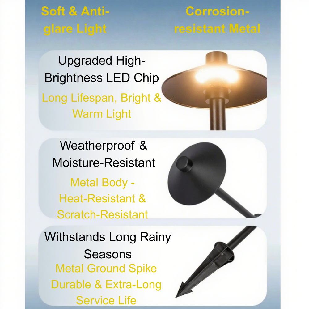 Light up your outdoor pathways with this modern black metal path light, featuring a sleek minimalist design that integrates well with various landscapes. Suitable for gardens, walkways, and open spaces, this durable fixture provides a soft warm glow that helps create a welcoming ambiance. Its all-metal construction is designed for sturdiness and corrosion resistance, making it a good choice for long-term outdoor use while adding a touch of contemporary style to your exterior décor.