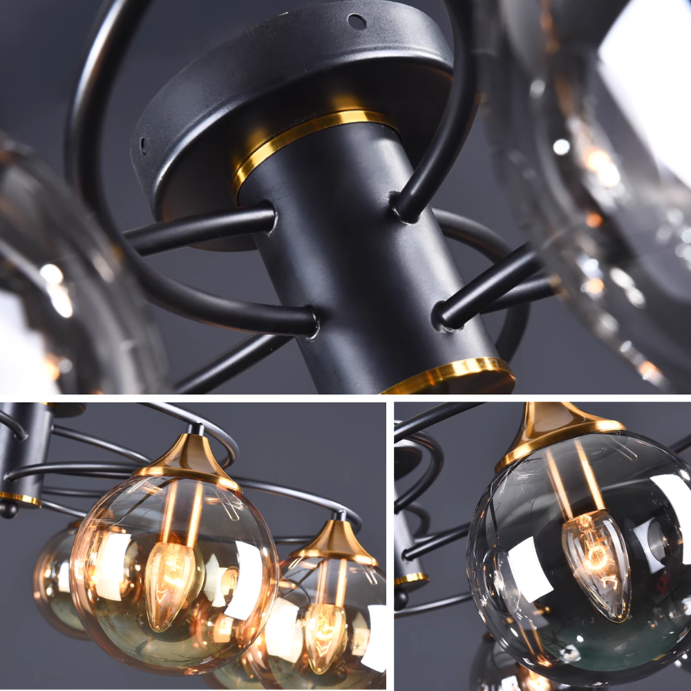 The metal frame combined with glass globes provides a sturdy yet elegant appearance, featuring a clear and polished texture.
