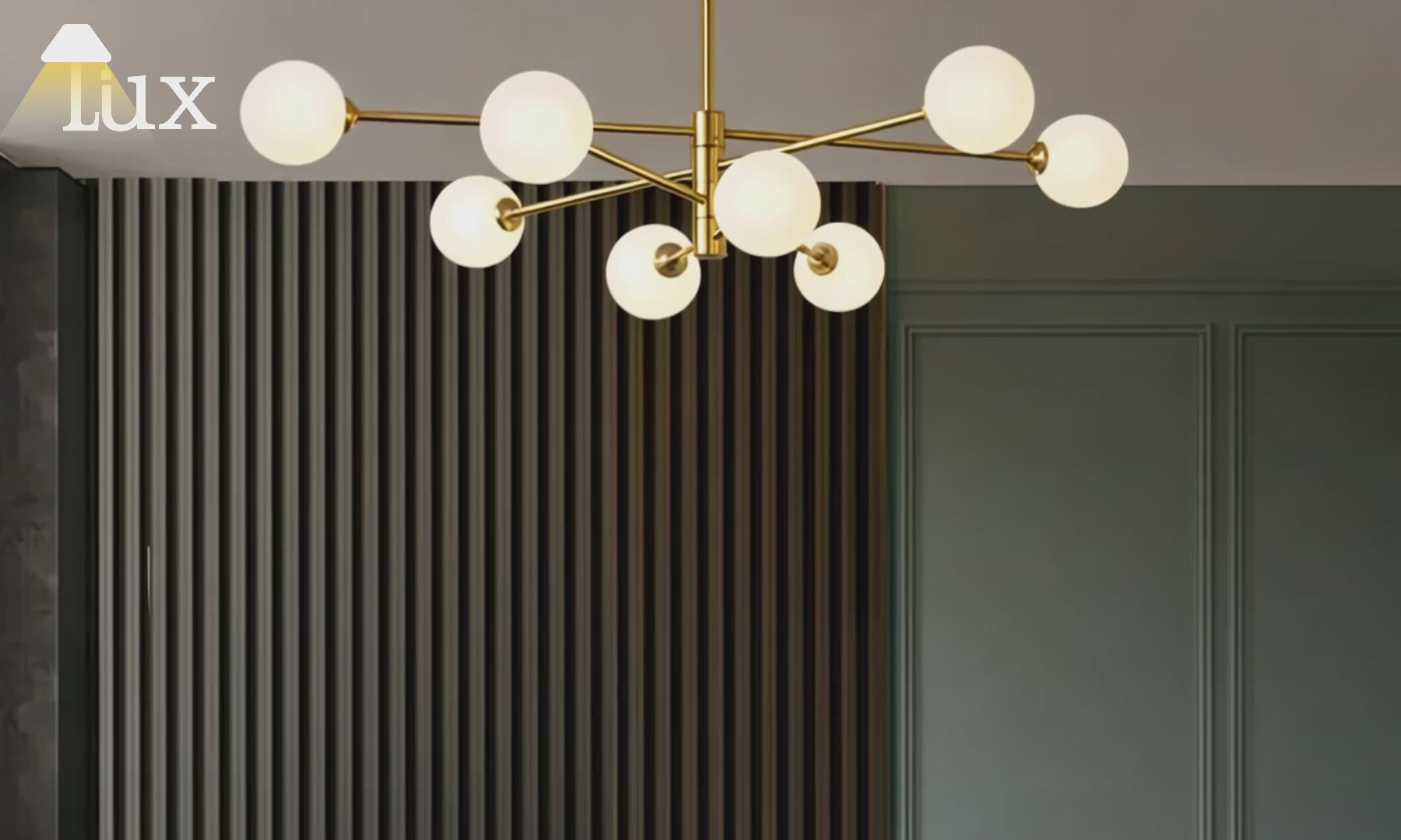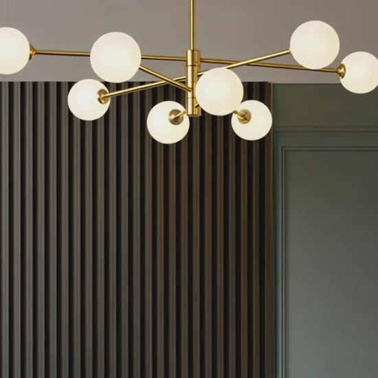Clustered spherical lights on extended arms feature a modern design with clean lines.